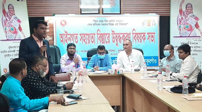 আলোচকগণ দীর্ঘ আলোচনায় আর্থিকভাবে অসচ্ছল,দরিদ্র ও অসহায়, নির্যাতিত ব্যাক্তিদের সরকারী খরচে দেওয়ানী, ফৌজদারী মামালার সহায়তা ও পরামর্শ দেওয়ার আহবান জানান।