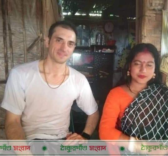 মোঃ মজিবর রহমান শেখ,, ঠাকুরগাঁও জেলা প্রতিনিধি,,প্রেম-ভালোবাসা মাঝে মাঝে সত্যিই অন্ধ করে দেয় মানুষকে। তাইতো প্রেম মানে না কোন বয়স, কোন নিয়ম। সমাজ যতই বাঁকা চোখে তাকাক, কটু কথা শোনাক, প্রেমের কাছে সকল বাধাই তুচ্ছ। তাইতো প্রেমের টানে ঠাকুরগাঁও জেলার বালিয়াডাঙ্গী উপজেলায় এসেছেন ইতালিয়ান যুবক আলী শান্দ্র । ২৫ জুলাই তিনি বাংলাদেশে আসেন। এরপর পরিবারের সম্মতিতে ঠাকুরগাঁও জেলার বালিয়াডাঙ্গী উপজেলার চাড়োল ইউনিয়নের খোকো পাড়া গ্রামের সাকরুস চন্দ্রের মেয়ে রতা (২০) এর সঙ্গে বিয়ে বন্ধনে আবদ্ধ হন। প্রেমের টানে ইতালি থেকে ছুটে আসা যুবক আলী শান্দ্র (৪০) ঠাকুরগাঁও বালিয়াডাঙ্গী উপজেলার চাড়োল ইউনিয়নের খোকোপাড়া গ্রামের সাকরুুস চন্দ্রের কন্যা রতা ( ২০) কে বিয়ে করেছেন। ২৫ জুলাই রাতেই তাদের বিয়ে সম্পন্ন হয়। জানা যায়, রতা সনাতন ধর্মাবলম্বী হওয়ায় সনাতন ধর্মাবলম্বী অনুসারেই তাদের বিয়ে সম্পন্ন হয়। মোবাইলে প্রেম, ভালোবাসা, দেখাদেখি এরপর আনুষ্ঠানিকভাবে বিয়ে সম্পন্ন। বিয়ের পরে রতা স্বামীর সাথে ইতালিতেই যাওয়ার কথা বলে জানায় রত্নার পরিবার। এদিকে আনুষ্ঠানিকভাবে তাদের বিয়ের ঘটনা সামাজিক যোগাযোগ মাধ্যমসহ স্থানীয়ভাবে ছড়িয়ে পড়লে ইতালিয়ান যুবককে এক নজর দেখতে দূর-দূরান্ত থেকে বহু মানুষ ছুটে আসে।