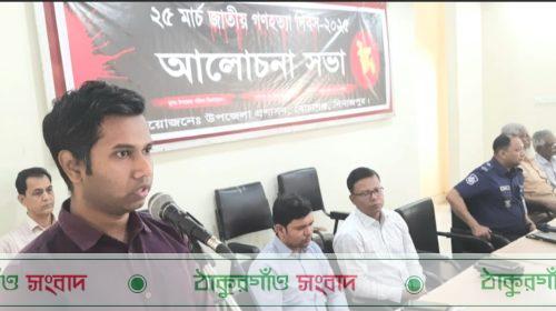পীরগঞ্জ প্রতিনিধি ঃ বিশ্ব জনসংখ্যা দিবস উপলক্ষে র্যালী ও আলোচনা সভা হয়েছে ঠাকুরগাঁওয়ের পীরগঞ্জে। বৃহস্পতিবার দুপুরে উপজেলা পরিবার পরিকল্পনা দপ্তরের আয়োজনে উপজেলা পরিষদ চত্বর থেকে র্যালী বের করা হয়। পরে উপজেলা পরিষদ সভাকক্ষে নব নিযুক্ত উপজেলা নির্বাহী অফিসার শাহরিয়ার নজিরের সভাপতিত্বে অনুষ্ঠিত। এতে বক্তব্য দেন, ঠাকুরগাও-৩ আসনের সংসদ সদস্য জাহিদুর রহমান, উপজেলা চেয়ারম্যান আলহাজ¦ আখতারুল ইসলাম, পৌর মেয়র বীরমুক্তিযোদ্ধা ইকরামুল হক, অফিসার ইনচার্জ জাহাঙ্গীর আলম, সাবেক মুক্তিযোদ্ধা কমান্ডার ইব্রাহীম খান, উপজেলা আওয়ামীলীগের সাধারণ সম্পাদক রেজওয়ানুল হক বিপ্লব, মেডিকেল অফিসার ডাঃ আবুল কালাম আজাদ প্রমূখ। এ সময় উপজেলা মহিলা ভাইস চেয়ারম্যান ভারতী রানী রায়, পীরগঞ্জ প্রেসক্লাবের সভাপতি জয়নাল আবেদিন বাবুল, সাধারণ সম্পাদক নসরতে খোদা রানা, সাবেক সভাপতি মেহের এলাহী সহ পরিবার পরিকল্পনা দপ্তরের অন্যান্য মাঠ কর্মকর্তারা উপস্থিত ছিলেন। শেষে কর্মক্ষেত্রে বিশেষ অবদান রাখায় ৬ জনকে পুরস্কার প্রদান করা হয়।