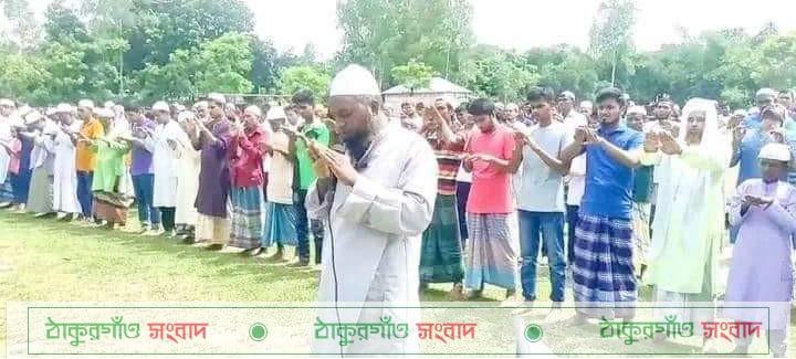 বিকাশ ঘোষ, বীরগঞ্জ (দিনাজপুর) প্রতিনিধি : বর্ষাকাল শেষে ভাদ্র মাসেও অনাবৃষ্টি ও টানা খরা। বৃষ্টির জন্য হাহাকার পড়েছে চারদিকে। রোপা আমনের ফসলি জমি শুকিয়ে গেছে। ফলে আমন আবাদ ব্যাহত হওয়ার শঙ্কা দেখা দিয়েছে। এ অবস্থায় দিনাজপুরের বীরগঞ্জে বৃষ্টি চেয়ে টানা তৃতীয় দিনের ন্যায় সোমবার (২২ আগস্ট-২০২২) সকাল ১০টায় শেষ দিনের মত ইস্তিসকার নামাজ ও বিশেষ দোয়ার আয়োজন করা হয়েছে। উপজেলার ৩নং শতগ্রাম ইউনিয়নের ঝাড়বাড়ী উচ্চ বিদ্যালয় মাঠে এই নামাজ আদায় করেন তিনদিনের ন্যায় স্থানীয় আলেম উলামা সহ প্রায় ৭ শতাধিক ধর্মপ্রাণ মুসল্লিরা।