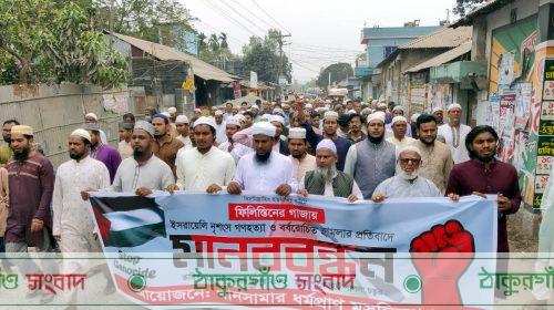 পঞ্চগড় প্রতিনিধি \ পঞ্চগড়ে জুয়া খেলার সরঞ্জাম ও নগদ অর্থসহ ১০ জুয়াড়িকে আটক করেছে পঞ্চগড় সদর থানা পুলিশ। গত বুধবার রাতে পঞ্চগড় জেলা শহরের কাঁচা বাজারের ফরিদুল ইসলাম ফরিদের পানের দোকানের ভেতর থেকে তাদের আটক করা হয়। আটককৃতরা হল পঞ্চগড় পৌর এলাকার রামের ডাঙ্গা গ্রামের ফরিদুল ইসলাম ফরিদ (৩৫), সাব্বির (২০), ইসলামবাগ গ্রামের রিপন (৪০), আশরাফ আলী (৩৬), কামাতপাড়া গ্রামের আনছারুল (৪০), মসজিদ পাড়া গ্রামের হারুন অর রশিদ (৩২), রাজনগর নতুন বস্তি গ্রামের আনছারুল (৩২), মীরগড় মধ্যপাড়া গ্রামের শিমুল (২৭), ঢাকাইয়াপট্টির জয়নাল (৪০) ও রাজনগর নতুন বস্তি গ্রামের কামাল হোসেন (৪৭)। এসময় তাদের কাছ থেকে দুই সেট তাস ও নগদ টাকা আলামত হিসেবে জব্দ করা হয়। গতকাল বৃহস্পতিবার পঞ্চগড় সদর থানার এসআই আলতাফ হোসেন সরকার বাদী হয়ে জুয়া আইনে তাদের বিরুদ্ধে একটি মামলা করে। পরে তাদের আদালতে নেয়া হলে আদালত সবাইকে জেল হাজতে পাঠানোর নির্দেশ দেন।