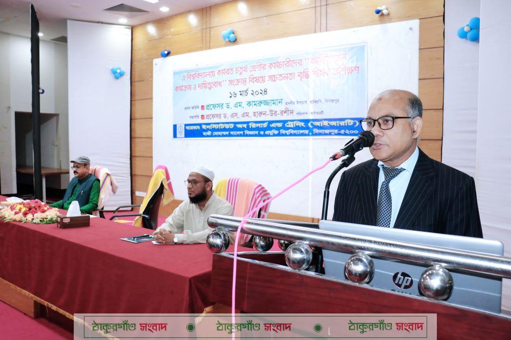 হাজী মোহাম্মদ দানেশ বিজ্ঞান ও প্রযুক্তি বিশ্ববিদ্যালয়ে (হাবিপ্রবি) ইনস্টিটিউট অব রিসার্চ এন্ড ট্রেনিং (আইআরটি) এর আয়োজনে চতুর্থ শ্রেণীর কর্মচারীদের (স্থায়ী) জন্য “অফিসিয়াল কার্যক্রম ও দায়িত্ববোধ” বিষয়ক দিনব্যাপী প্রশিক্ষণ কর্মশালা অনুষ্ঠিত হয়েছে। শনিবার সকাল ১০ টায় বিশ্ববিদ্যালয়ের অডিটোরিয়াম-২ এ উক্ত প্রশিক্ষণ কর্মশালার উদ্বোধনী অনুষ্ঠান অনুষ্ঠিত হয়। এতে প্রধান অতিথি হিসেবে উপস্থিত ছিলেন হাবিপ্রবির ভাইস-চ্যান্সেলর প্রফেসর ড. এম. কামরুজ্জামান, সভাপতিত্ব করেন আইআরটি এর পরিচালক প্রফেসর ড. এস. এম. হারুন-উর-রশীদ, সঞ্চালনা করেন আইআরটি এর সহযোগী পরিচালক প্রফেসর ড. মোঃ সুলতান মাহমুদ। অনুষ্ঠানে আইআরটি এবং জনসংযোগ ও প্রকাশনা শাখার কর্মকর্তাবৃন্দ উপস্থিত ছিলেন।