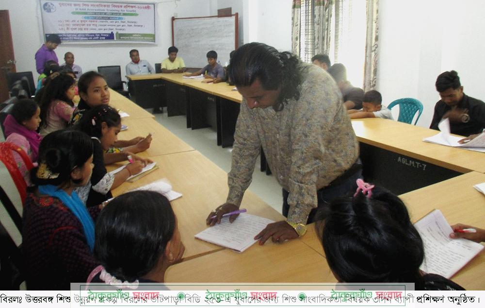 শিশুদের দারিদ্রতা থেকে মুক্ত করার লক্ষ্যে কম্প্যাশন ইন্টারন্যাশনাল বাংলাদেশ এর অর্থায়নে এবং বাংলাদেশ ন্যাজ্যারীণ মিশন (বিএনএম) এর পরিচালনায় প্রকল্পের ভাটপাড়া অফিসের হলরুমে গত ২৩ হতে ২৫ এপ্রিল তিন দিন ব্যাপী যুবাদের শিশু সাংবাদিকতা বিষয়ক এ প্রশিক্ষণ অনুষ্ঠিত হয়। তিন দিন ব্যাপী এ প্রশিক্ষণে প্রশিক্ষক হিসাবে উপস্থিত থেকে প্রশিক্ষণ প্রদান করেন, বিরল প্রেসক্লাবের সভাপতি এম, এ কুদ্দুস সরকার, সাধারণ সম্পাদক মোজাম্মেল হক শামু ও সদস্য সুবল রায়। বৃহস্পতিবার বিকালে প্রশিক্ষণের সমাপনি অনুষ্ঠানে উপস্থিত থেকে বক্তব্য রাখেন, প্রকল্প ব্যবস্থাপক মি. কমলেশ চন্দ্র রায় ও এল.সি.সি চেয়ারম্যান মি. মিলন চন্দ্র রায়। প্রশিক্ষণে ২৫ জন প্রশিক্ষণার্থী অংশ গ্রহন করেন।