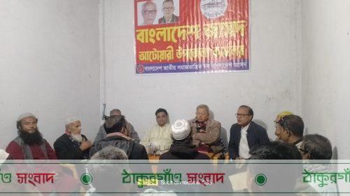 “দিনাজপুরের মানুষ আমরা ফিলিস্তিনের সঙ্গে আছি” -শীর্ষক প্রতিবাদ বিক্ষোপ কমিটির সমন্বয়কারী ও বাংলাদেশের কমিউনিস্ট পার্টি দিনাজপুর জেলা শাখার সভাপতি এ্যাডভোকেট মেহেরুল ইসলাম এর নেতৃত্বে মিছিলের নেতৃত্ব দেন জেলা জাসদের সভাপতি এ্যাড লিয়াকত আলী, সাধারণ সম্পাদক সহিদুল ইসলাম শহীদুল্লাহ, বাংলাদেশের ওয়াকার্স পার্টি দিনাজপুর জেলা শাখার সম্পাদক মন্ডলীর সদস্য রবিউল আউয়াল খোকা, সম্মিলীত সংস্কৃতিক জোট দিনাজপুরের সভাপতি সুলতান কামাল উদ্দীন বাচ্চু, বিপ্লবী কমিউনিস্ট লীগ কেন্দ্রীয় সম্পাদক মন্ডলীর সদস্য মোশাররফ হোসেন নান্নু, এ্যাডাব এর সভাপতি মোঃ মোজাফ্ফর হোসেন, দিনাজপুর নাট্য সমিতির সাধারণ সম্পাদক রেজাউর রহমান রেজু, মহিলা পরিষদের কেন্দ্রীয় কমিটির সহ সভাপতি কানিজ রহমান, বিশিষ্ট কবি ও সাহিত্যিক জলিল আহম্মেদ, খেলাঘর কেন্দ্রীয় কমিটির সদস্য নুরুল মতিন সৈকত, অরবিন্দ শিশু হাসপাতাল কমিটির সহ সাধারণ সম্পাদক জামিরুল ইসলাম জুয়েল, বাসদ দিনাজপুর জেলা শাখার আহবায়ক কিবরিয়া হোসেন, এসএম মনিরুজ্জামান মনির। সার্বিক তত্ত¡াবধায়নে ছিলেন অমৃত রায়। বক্তারা বলেন, গাজায় চলমান গণহত্যা অবিলম্বে বন্ধ করে ফিলিস্তিনিদের মুক্ত করতে হবে। আমাদের জোর দাবী ইসরাইলকে জাতিসংঘ থেকে বহিষ্কার করতে হবে। আজকের এই বিক্ষোভ সমাবেশে আমাদের স্বোচ্ছার কন্ঠস্বর গর্জে উঠুক এবং সবাই একসাথে বলুন মার্কিন স¤্রাজ্যবাদ ধ্বংস হোক- নিপাত যাক। ফিলিস্তিনের বীর জনতা আমরা তোমাদের সাথে আছি এবং থাকবো।