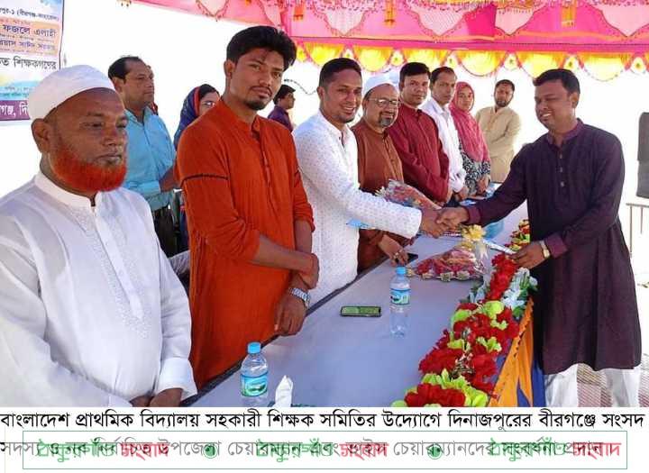 বাংলাদেশ প্রাথমিক বিদ্যালয় সহকারী শিক্ষক সমিতি বীরগঞ্জ উপজেলা সভাপতি মোঃ নজরুল ইসলামের সভাপতিত্বে অনুষ্ঠানে বক্তব্য রাখেন দিনাজপুর-১ (বীরগঞ্জ-কাহারোল) আসনের জাতীয় সংসদ সদস্য আলহাজ্ব মোঃ জাকারিয়া জাকা, নব নির্বাচত উপজেলা চেয়ারম্যান মোঃ আবু হুসাইন বিপু, নব নির্বাচিত উপজেলা ভাইস চেয়ারম্যান ইঞ্জিনিয়ার পরিমল কুমার রায় ও মহিলা ভাইস চেয়ারম্যান মোছাঃ আয়শা আক্তার বৃষ্টি।