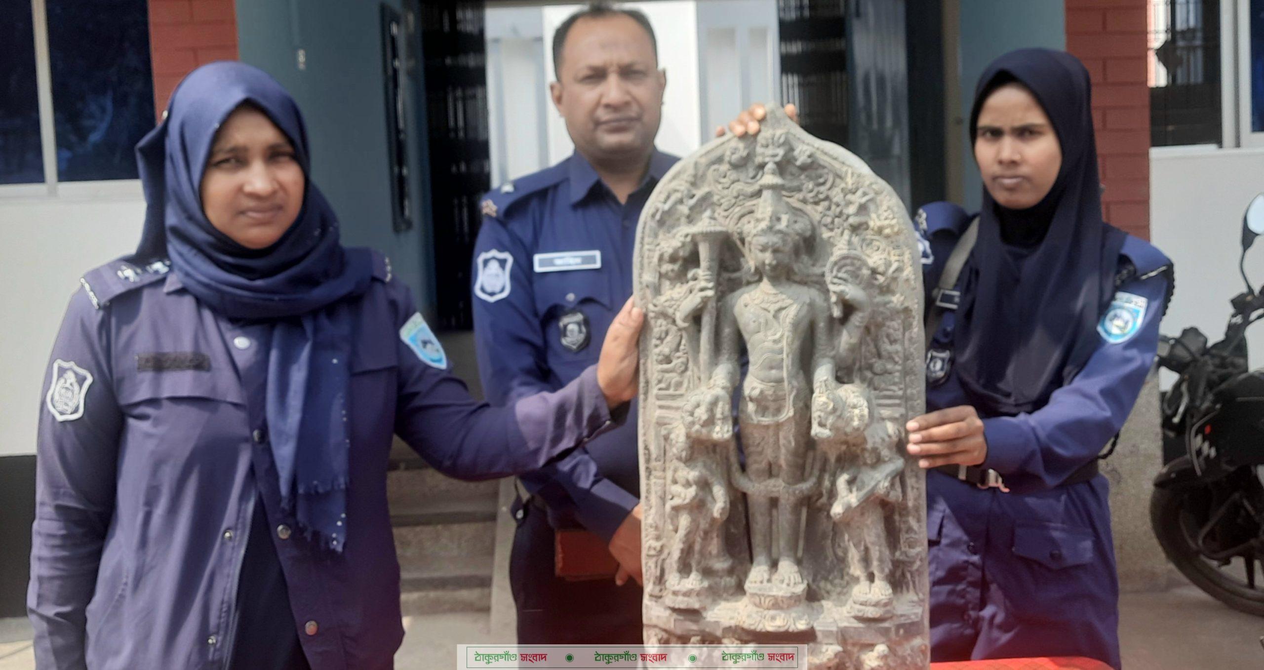 মোঃ শামসুল আলম বোচাগঞ্জ (দিনাজপুর) প্রতিনিধি\ দিনাজপুরের বোচাগঞ্জে শুক্রবার দিবাগত ভোর রাতে ৩৫কেজি ওজনের একটি কষ্টি পাথরের মূর্তি উদ্ধার করেছে পুলিশ। থানা সুত্রে জানাগেছে, শুক্রবার ভোর রাতে গোপন সংবাদের ভিত্তিতে সংবাদ পেয়ে থানার অফিসার ইনচার্জ মোঃ হাসান জাহিদ সরকার এর নিদের্শে এস.আই মহুবার রহমান ও এ.এস.আই মোঃ কাওছার এর নেতৃত্বে সঙ্গীয় ফের্সিসহ উপজেলার ৫নং-ছাতইল ইউনিয়নের বসবাসকারী মৃত- আনছার আলীর পুত্র মোঃ জাহাঙ্গীর আলম এর পুকুর হতে পরিত্যাক্ত অবস্থায় স্থানীয় জনগণের সহযোগিতায় মূর্তিটি উদ্ধার করার পর জব্দ তালিকা শেষে থানা হেফাজতে রাখা হয়েছে। এ বিষয়ে থানার অফিসার ইনচার্জ মোঃ হাসান জাহিদ সরকার বলেন, ধারনা করা হচ্ছে এটি কষ্টি পাথরের বিষ্ণু মূর্তি। এখন পর্যন্ত মূর্তিটি পরীক্ষা করা হয়নি তবে বিশেজ্ঞ দিয়ে পরীক্ষা করার পর বিষয়টি নিশ্চিত হওয়া যাবে। এ বিষয়ে থানায় একটি জিডি করা হয়েছে।