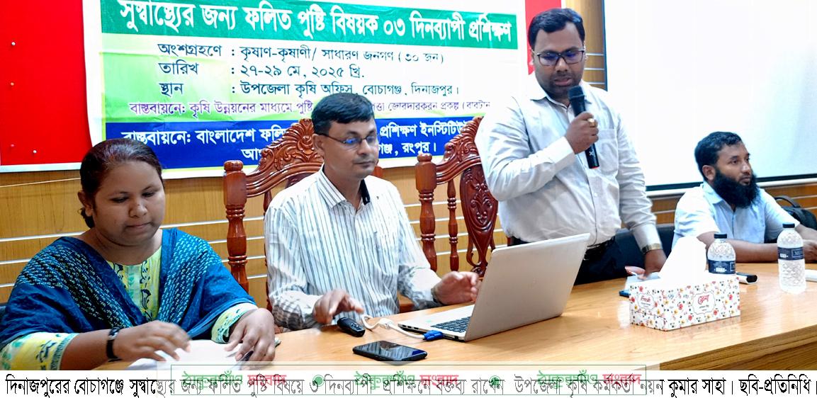 বোচাগঞ্জ (দিনাজপুর) প্রতিনিধি। দিনাজপুরের বোচাগঞ্জে সুস্বাস্থ্যের জন্য ফলিত পুষ্টি বিষয়ক ৩ দিনব্যাপী প্রশিক্ষন অনুষ্ঠিত হয়েছে।