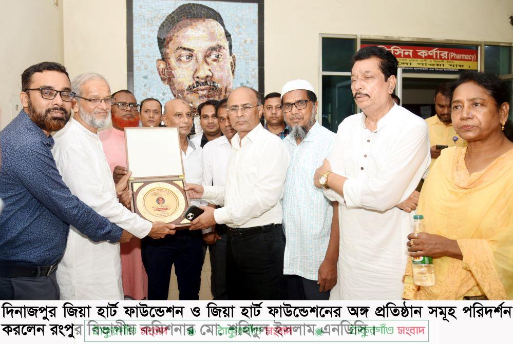 দিনাজপুর জিয়া হার্ট ফাউন্ডেশন ও জিয়া হার্ট ফাউন্ডেশনের অঙ্গ প্রতিষ্ঠান সমূহ পরিদর্শনে এলে রংপুর বিভাগের বিভাগীয় কমিশনার মো. শহিদুল ইসলাম এনডিসি এবং দিনাজপুর জেলা প্রশাসক মো. রফিকুল ইসলাম-কে ফুল দিয়ে বরণ করে নেন জিয়া হার্ট ফাউন্ডেশনের সাধারণ সম্পাদক এ কে এম আজাদসহ অন্যান্য নেতৃবৃন্দ। শেষে নেতৃবৃন্দ রংপুর বিভাগীয় কমিশনারকে সম্মাননা ক্রেস্ট প্রদান করেন।