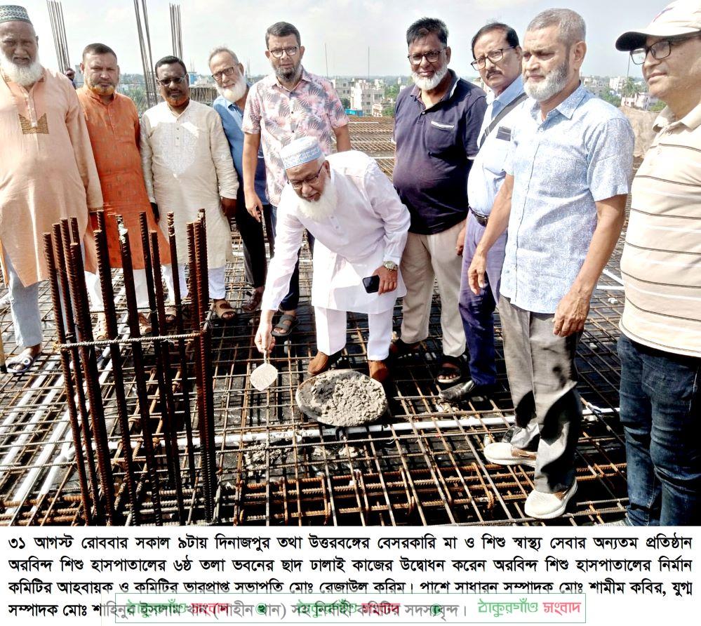 রোববার সকাল ৯টায় দিনাজপুর তথা উত্তরবঙ্গের বেসরকারি মা ও শিশু স্বাস্থ্য সেবার অন্যতম প্রতিষ্ঠান অরবিন্দ শিশু হাসপাতালের ৬ষ্ঠ তলা ভবনের ছাদ ঢালাই কাজের উদ্বোধন করা হয়েছে।