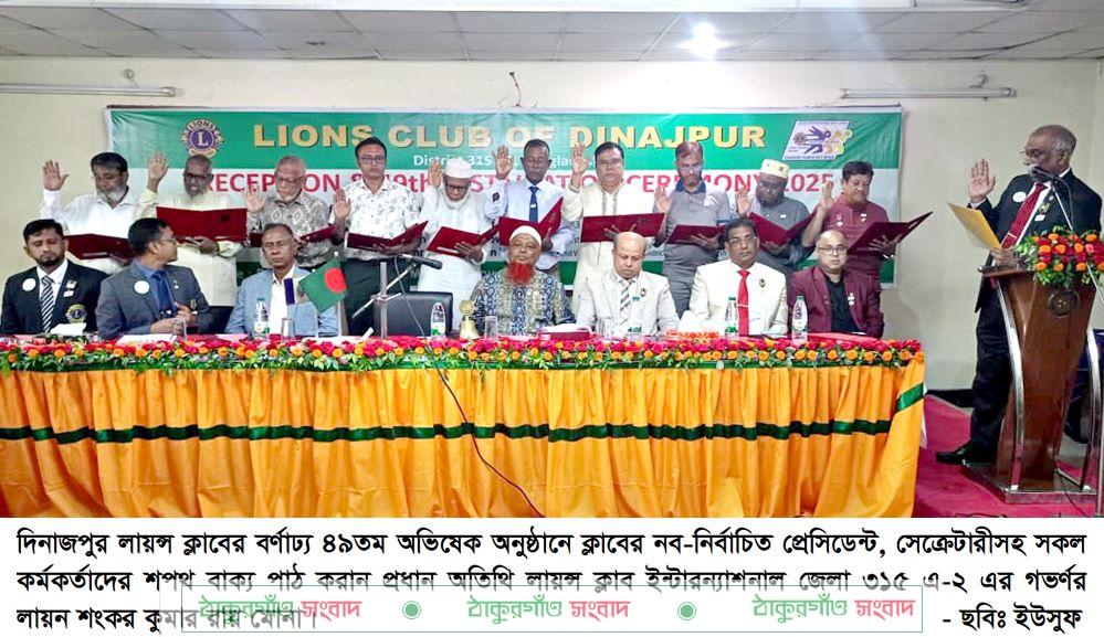 দিনাজপুর লায়ন্স ক্লাবের বর্ণাঢ্য ৪৯তম অভিষেক অনুষ্ঠান(২১ আগস্ট-২০২৫) বৃহস্পতিবার রাতে শহরের পর্যটন মোটেল অ্যান্ড রিসোর্টে এক উৎসবমুখর পরিবেশে অনুষ্ঠিত হয়েছে।