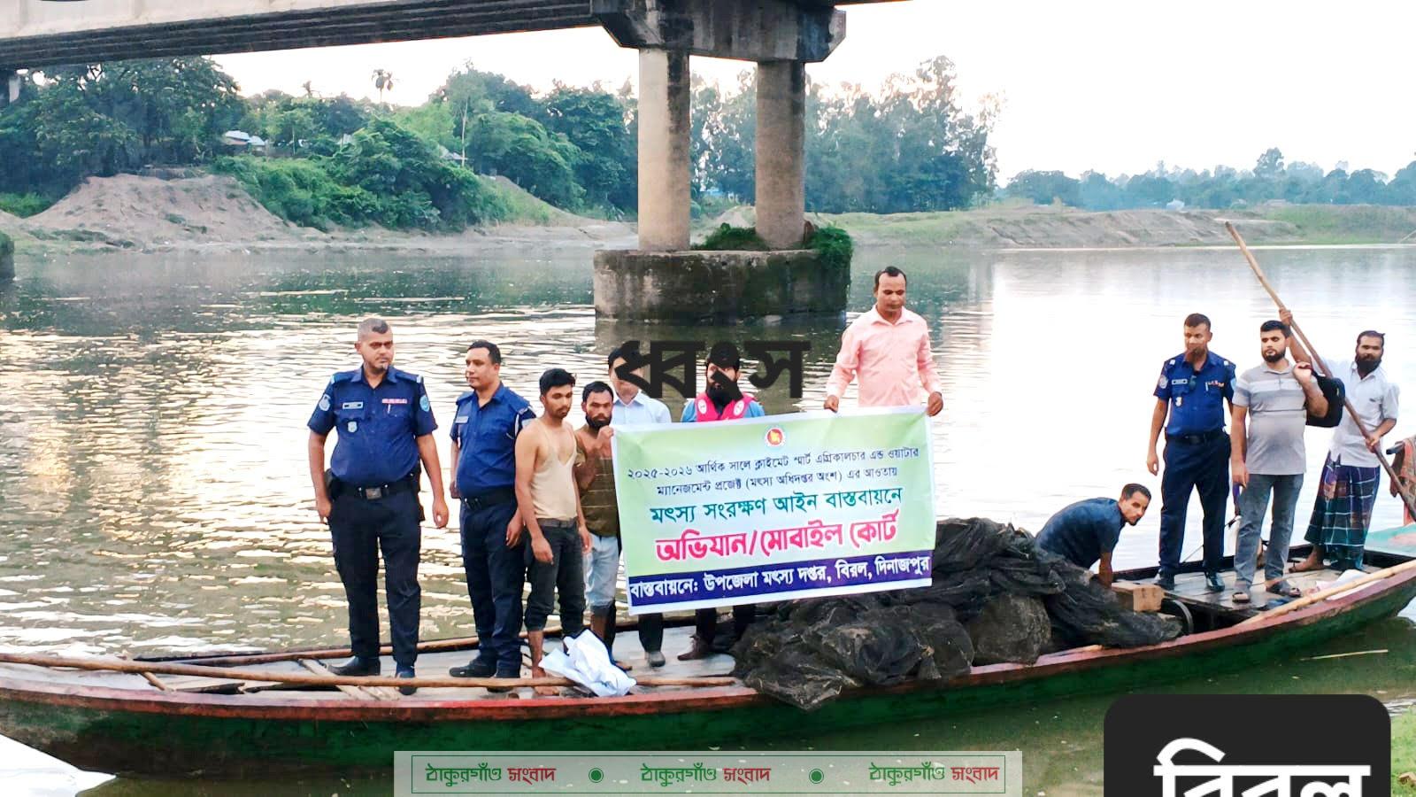 বিরল (দিনাজপুর) প্রতিনিধি।।দিনাজপুরের বিরলে পূর্ণভবা নদীতে ভ্রাম্যমাণ আদালতের অভিযানে লক্ষাধিক টাকার অবৈধ চায়না দুয়ারী জাল জব্দের পর পুড়িয়ে ধ্বংস করা হয়েছে।