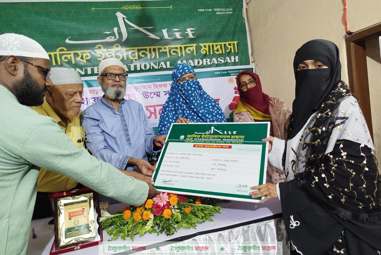 উল্লেখ্য, ২০২৩ সালে আলিফ ইন্টারন্যাশনাল মাদ্রাসার হিফজ বিভাগ চালুর পর বালক ও বালিকা শাখার মধ্যে মোছাঃ উম্মে সায়মাই প্রথম হিফজ সম্পন্ন করল।