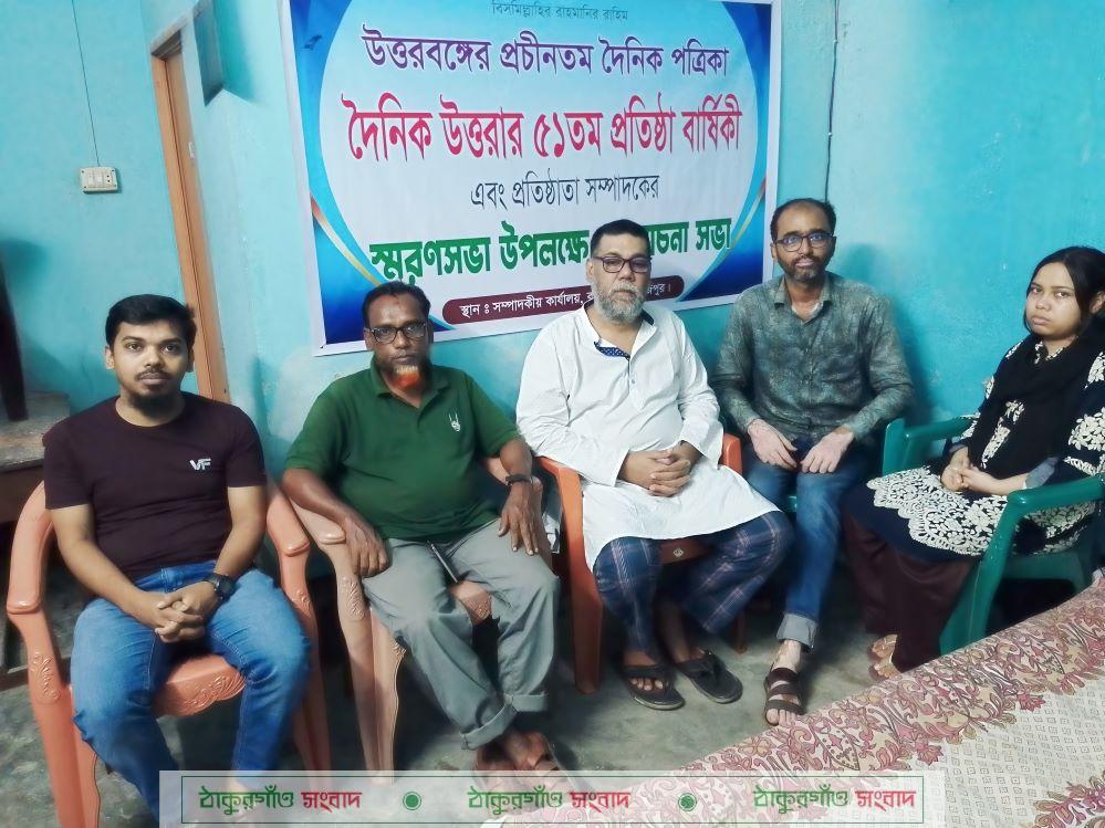 দিনাজপুরে উত্তরবঙ্গের প্রাচীনতম দৈনিক উত্তরার ৫১তম প্রতিষ্ঠাবার্ষিকী এবং প্রতিষ্ঠাতা সম্পাদক মুহম্মদ মহসীনের স্মরণসভা উপলক্ষে আলোচনা সভা অনুষ্ঠিত হয়েছে। বুধবার রামনগরের সম্পাদকীয় কার্যালয়ে এই আয়োজন অনুষ্ঠিত হয়েছে।