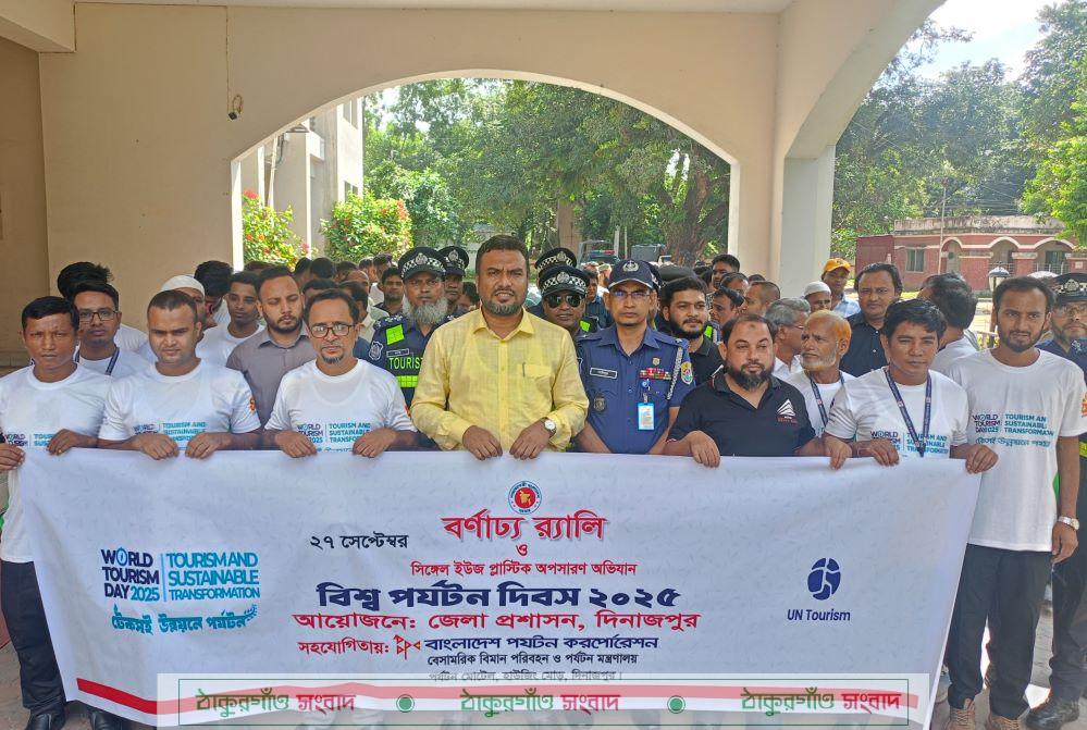 দিনাজপুর জেলা প্রশাসনের আয়োজনে ও বাংলাদেশ পর্যটন কর্পোরেশন দিনাজপুরের সহযোগিতায় বিশ্ব পর্যটন দিবস-২০২৫ উপলক্ষে বর্ণাঢ্য রেলি ও সিঙ্গেল ইউজ প্লাস্টিক অপসারণ অভিযান পরিচালনা করা হয়।