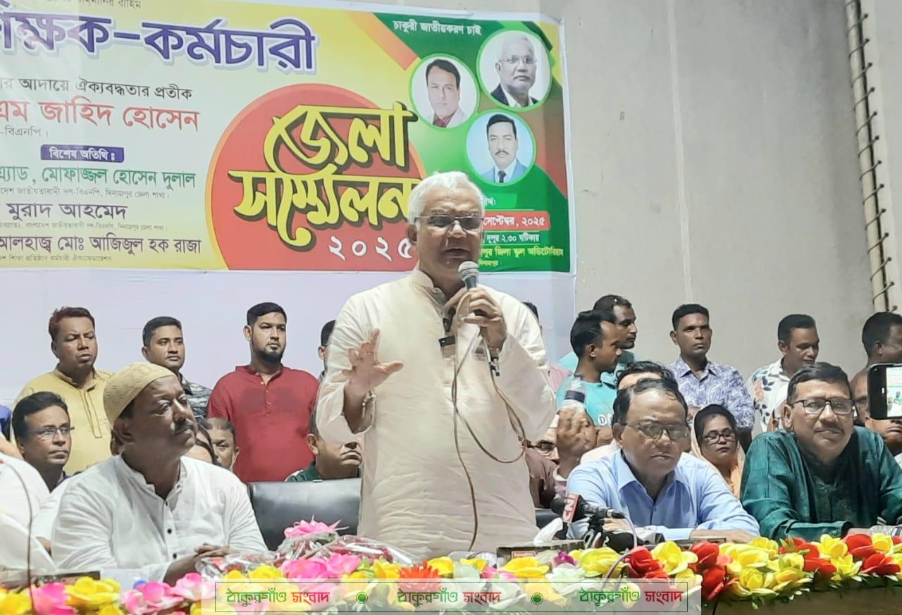 গত ১৯ সেপ্টেম্বর শুক্রবার বিকালে দিনাজপুর জেলা স্কুল অডিটোরিয়ামে শিক্ষক কর্মচারী ঐক্যজোট জেলা সম্মেলন ২০২৫ এর অনুষ্ঠানে জেলা শাখার সভাপতি ও দিনাজপুর ২- (বিরল বোচাগঞ্জ) আসন হতে বিএনপির এমপি মনোনয়ন প্রত্যাশী অধ্যাপক মোঃ মনজুরু ইসলাম এর সভাপতিত্বে প্রধান অতিথির বক্তব্যে বিএনপিনেতা জাহিদ হোসেন আরো বলেন, ২০২৬ সালের মধ্য ফেব্রয়ারীর মধ্যে নির্বাচন হবে। একবার নিশি রাতের ভোট, একবার আমি ডামি ভোট হয়েছে। কাজেই জনগণ তার হারানো যে অধিকার তা প্রয়োগ করার সুযোগের জন্য উন্মুখ হয়ে আছে। সেই জনগণকে বঞ্চিত করে যারা আবারও বলছে বাংলাদেশে ওয়ান এলাভেন আসছে, কেউ কেউ বলার চেষ্টা করছে আবার নাকি এদেশে সৈরাচারের আবির্ভাব হবে। আমি তাদের সবার জানার জন্য বলি, যারা ওয়ান এলাভেন করেছিলেন তাদের অভিজ্ঞতার কথা মনে আছে-তো। তাদের কি ভাবে যেতে হয়েছে, আজকে তারা কোথায় আছে, সমাজে তারা মুখ দেখাতে পারে না। আর যারা সৈরাচারী কায়দায় সরকারী প্রশাসন যন্ত্র আইন শৃঙখলাকে ব্যবহার করে মনে করেচিলেন যে এটা তাদের বাব-দাদার তালুকদারী সেই সমস্ত মানুষ গুলো আজকে কোথায় আছে। পালিয়ে গেছে অথবা বিভাবে তারা জীবন যাপন করছে সেখান থেকে সবার শিক্ষা নেওয়া উচিৎ। অনুষ্ঠানে প্রধান বক্তা ছিলেন শিক্ষক কর্মচারী ঐক্যজোট এর চেয়ারম্যান ও বিএনপির কেন্দ্রীয় কমিটির সাংগঠনিক সম্পাদক অধ্যক্ষ মোঃ সেলিম ভুঁইয়া। বিশেষ অতিথি ছিলেন যথাক্রমে দিনাজপুর জেলা বিএনপির সভাপতি এ্যাডভোটেক মোফাজ্জল হোসেন দুলাল, ভারপ্রাপ্ত সাধারণ সম্পাদক মুরাদ আহমেদ, বাংলাদেশ শিক্ষা প্রতিষ্ঠান কর্মচারী ফেডারেশন এর মহাসচিব আজিজুল হক রাজা প্রমুখ। এসময় জেলা বিএনপির সাবেক সাধারণ সম্পাদক বখতিয়ার আহমেদ কচিসহ দিনাজপুরের ১৩টি উপজেলার সিংহ ভাগ শিক্ষক ও বিএনপির বিভিন্ন পর্যায়ের নেতাকর্মীরা উস্থিত ছিলেন।