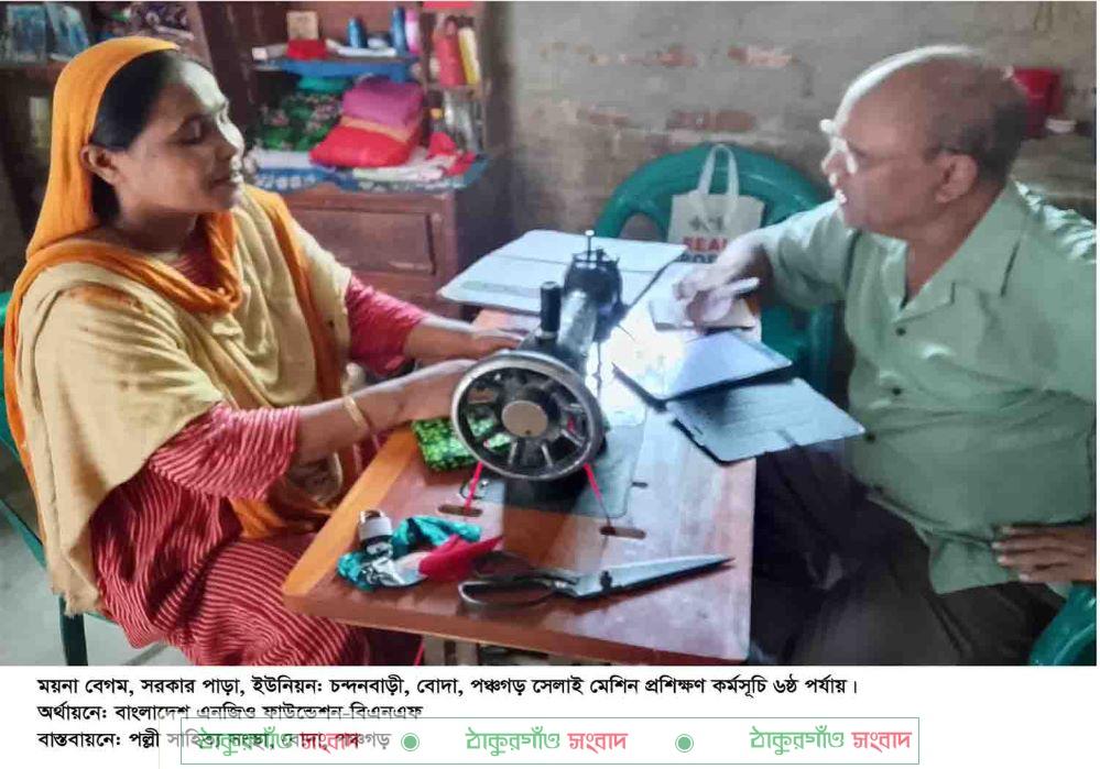 বোদা.পঞ্চগড় প্রতিনিধি\ এক যুগ আগে ময়না বেগম কে দারিদ্রতা কুড়ে কুড়ে খেতো। সেলাই প্রশিক্ষণ নিয়ে কঠোর পরিশ্রম করে ময়না বেগম আজ দারিদ্রতাকে জয় করে স্বাবলম্বী হয়েছেন। অভাব-অনাটনের সংসারে,সাংসারিক কাজের ফাঁকে ফাঁকে দর্জির কাজ করে তিনি প্রতি মাসে আয় করছেন ৬ থেকে ৮ হাজার টাকা। পঞ্চগড় জেলার বোদা উপজেলার চন্দনবাড়ি ইউনিয়নের সরকার পাড়া গ্রামের বাসিন্দা রাজমিস্ত্রি জফিরুল ইসলামের স্ত্রী সংগ্রামী ময়না বেগমের কঠোর পরিশ্রমের পর স্বাবলম্বী হওয়ার কথা বলছিলাম। ময়না বেগমের স্বামী জফিরুল ইসলাম রাজমিস্ত্রির কাজ করে,প্রতিদিন কাজ থাকেনা। স্বল্প আয়ে স্বামী ও দুই সন্তান নিয়ে অভাব-অনাটনের মধ্য দিয়ে দারুন কষ্টে সংসার চালাতে হতো তাকে। সংসার চালাতে তাকে মানুষের বাড়িতেও কাজে সন্ধানে যেতে হতো। এরই মাঝে তার মনে দর্জির কাজ করার ইচ্ছা জাগে। কিন্তু তার এ বিষয়ে অভিজ্ঞতা নেই। সেলাইয়ের কাজ শেখার জন্য তিনি বিভিন্ন দর্জির দোকানে যোগাযোগ করে,কিন্তু কেউ তাকে এই সুযোগ করে দেয়নি। এক পর্যায়ে তিনি জানতে পারেন বোদা উপজেলা সদরে পল্লী সাহিত্য সংস্থা নামে একটি স্বেচ্ছাসেবী সংগঠন (এনজিও) দরিদ্র মহিলাদের স্বাবলম্বী করতে বিনামুল্যে সেলাই প্রশিক্ষণ প্রদান করে,বিনামুল্যে সেলাই মেশিনও প্রদান করছেন। সংস্থাটির নির্বাহী পরিচালক হারুন অর রশিদের সাথে কথা বলে তিনি সেলাই প্রশিক্ষণের জন্য আবেদন জমা করেন।সংস্থাটি যাচাই-বাছাই ও সরেজমিন তদন্ত করে দরিদ্র ময়না বেগমকে ৫ মাসের সেলাই প্রশিক্ষনের সুযোগ প্রদান করেন। ৫ মাসের প্রশিক্ষণে সে সেলাইতে প্রশিক্ষিত হয়ে উঠেন। ৫ মাস প্রশিক্ষণ প্রদানের পর বাংলাদেশ এনজিও ফাউন্ডেশনের সহায়তায়,পল্লী সাহিত্য সংস্থা তাকে বিক্রি না করার শর্তে ২০১৩ সালে বিনামুল্যে একটি সেলাই মেশিন প্রদান করেন এবং দীর্ঘ দিন তদ্বারকি করেন। দর্জি প্রশিক্ষণ গ্রহন করে বিনামুল্যে সেলাই মেশিন পাওয়ার পর সে বাড়িতেই সংসারের কাজের ফাঁকে ফাঁকে দর্জির কাজ শুরু করেন। তার কোজের মান ভাল হওয়ায় দিন দিন বাড়তে থাকে কাজের পরিধি। এলাকার সব মানুষ তার কাছেই পোশাক তৈরী করে। ঈদ-পুঁজা এলেই কাজের ভীড় বেড়ে যায়। ময়না বেগমকে আর পিছনে ফিরে তাকাতে হয়নি। সেলাই প্রশিক্ষণেই তাকে স্বাবলম্বী করেছে। এখন স্বামী ও সন্তানদের নিয়ে বেশ সুখে আছেন। দর্জির কাজ করে দীর্ঘ ১২ বছরে তিনি কুড়ে ঘর থেকে তিনি ইট-সিমেন্টের গাঁথুনি দিয়ে পাকা ঘর নির্মাণ করেছেন। লেখা-পড়া শিখিয়ে ভাল ছেলের সাথে মেয়ের বিয়ে দিয়েছেন। ছেলেও লেখা পড়া করছে। এখন আর তার সংসারে কোন অভাব নেই। বাড়ির পাশে একটু জমিও কিনেছেন।ময়না বেগম বলেন,পল্লী সাহিত্য সংস্থার প্রশিক্ষণ ও বিনামুল্যে সেলাই মেশিন প্রাপ্তী ত