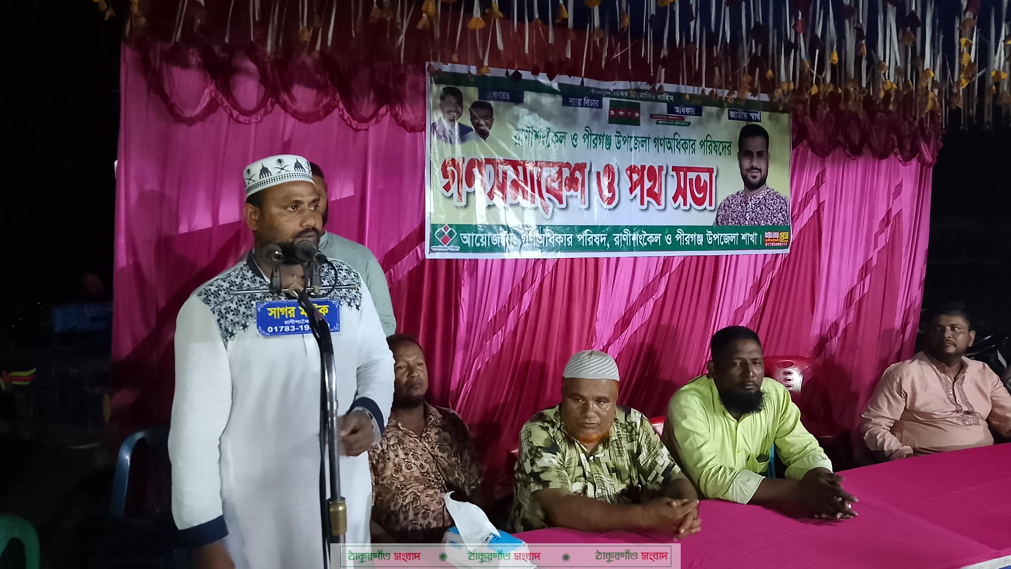 রাণীশংকৈল (ঠাকুরগাঁও) প্রতিনিধি ঃ ঠাকুরগাঁওয়ের রাণীশংকৈল উপজেলা গণঅধিকার পরিষদের উদ্যোগে সোমবার (২২ সেপ্টেম্বর) বিরাশি স্কুল মাঠে গণসমাবেশ ও পথসভা অনুষ্ঠিত হয়।
