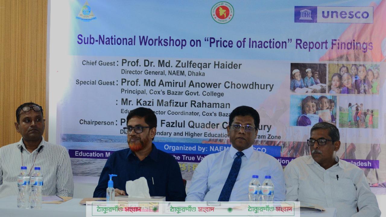 ইউনেস্কো ঢাকা, জাতীয় শিক্ষা ব্যবস্থাপনা একাডেমি (নায়েম)-এর সহযোগিতায় আজ কক্সবাজারে একটি উপ-জাতীয় কর্মশালার আয়োজন করে। কর্মশালার লক্ষ্য ছিল ‘দ্য প্রাইস অব ইনঅ্যাকশন’ রিপোর্ট ২০২৪’-এর ফলাফল প্রচারভিত্তিক আঞ্চলিক পর্যায়ের শিক্ষা সংশ্লিষ্ট অংশীজনদের সাথে শিক্ষা বিনিয়োগ বৃদ্ধির গুরুত্ব নিয়ে আলোচনা করা।