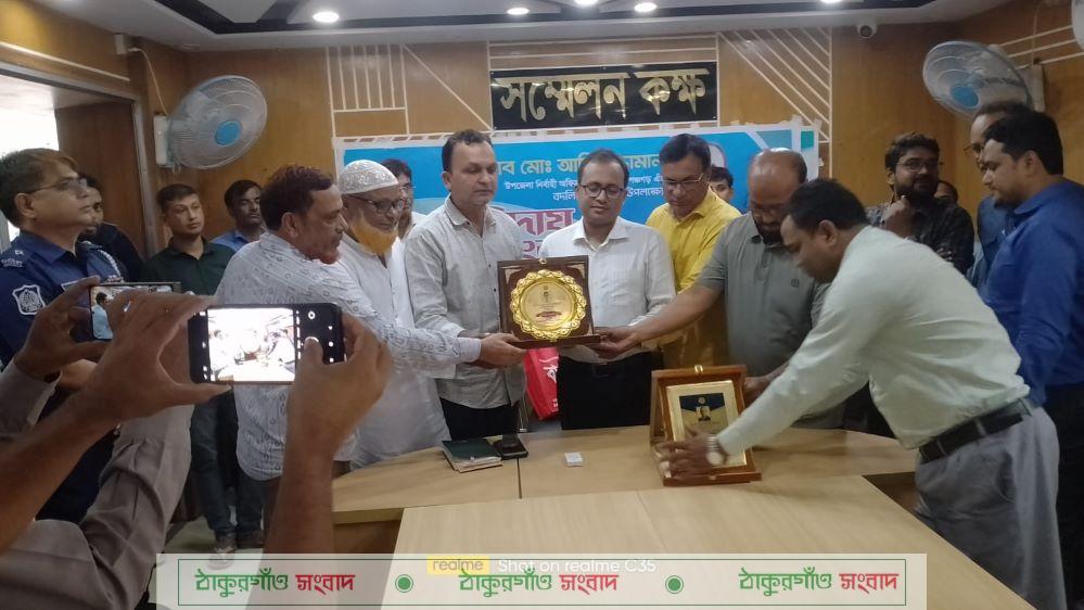 আটোয়ারী(পঞ্চগড়) প্রতিনিধি ঃ পঞ্চগড়ের আটোয়ারী উপজেলা নির্বাহী অফিসার (ইউএনও) মোঃ আরিফুজ্জামানকে বিদায় সংর্ধনা দেয়া হয়েছে। উপজেলা অফিসার্স ক্লাবের আয়োজনে বৃহস্পতিবার ( ৩০ অক্টোবর) দুপুর প্রায় দেড়টার দিকে উপজেলা পরিষদ সম্মেলন কক্ষে এ বিদায় সংবর্ধনা অনুষ্ঠিত হয়। অফিসার্স ক্লাবের সহ-সভাপতি ও উপজেলা কৃষি অফিসার মোস্তাক আহমেদ এর সভাপতিত্বে এবং উপজেলা মাধ্যমিক শিক্ষা অফিসার লুৎফুল কবির মোঃ কামরুল হাসানের সঞ্চালনায় বিদায়ী ইউএনও’র আটোয়ারীতে ৬ মাস কর্মকালের স্মৃতিচারণসহ নিজস্ব অনুভুতি ব্যক্ত করে বক্তব্য রাখেন, অফিসার্স ক্লাবের সাবেক সাধারণ সম্পাদক ও উপজেলা স্বাস্থ্য ও প. প. কর্মকর্তা ডা. মোঃ হুমায়ুন কবীর, আটোয়ারী থানার অফিসার ইনচার্জ মোঃ রফিকুল ইসলাম সরকার(জুয়েল), অফিসার্স ক্লাবের সাধারণ সম্পাদক ও উপজেলা প্রকৌশলী (এলজিইডি) মোঃ ফয়সাল, উপজেলা প্রাথমিক শিক্ষা অফিসার মোঃ মাসুদ হাসান, উপজেলা সমবায় অফিসার মোঃ ফারুক হোসেন, উপজেলা মহিলা বিষয়ক কর্মকর্তা করুনা কান্ত রায়, উপজেলা প্রকল্প বাস্তবায়ন কর্মকর্তা (অ.দা.) জিয়াউর রহমান, উপজেলা প্রেসক্লাবের সভাপতি মোঃ ইউসুফ আলী প্রমুখ।