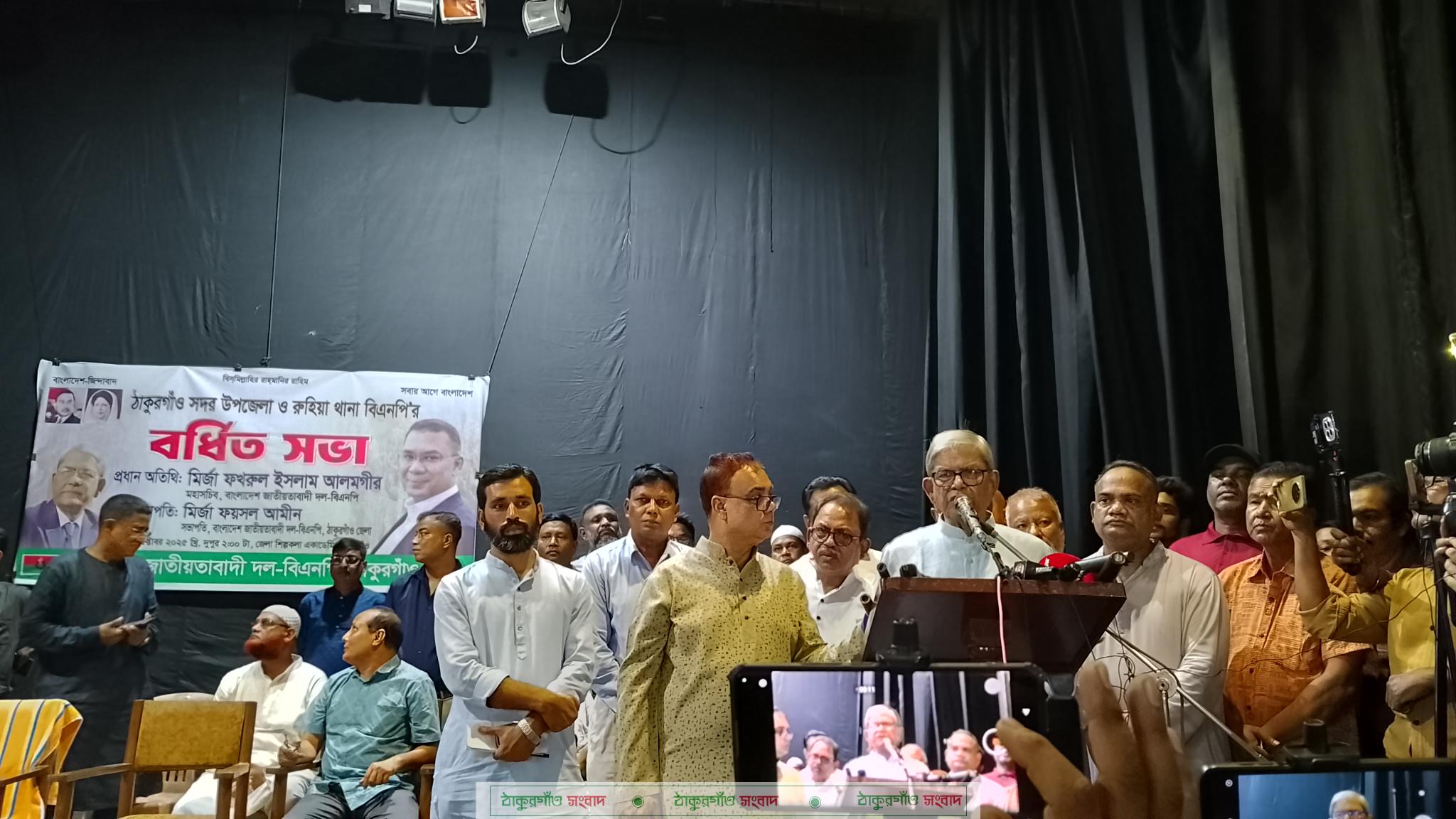 মোবারক আলী :ঠাকুরগাঁয়ের শিল্পকলা একাডেমি মিলনায়তনে ১৪ অক্টোবর মঙ্গলবার বিকালে ঠাকুরগাঁও সদও ও রুহিয়া থানা বিএনপি’র বর্ধিত সভায় প্রধান অতিথির বক্তব্যে বিএনপি’র মহাসচিব মির্জা ফখরুল ইসলাম আলমগীর বলেন,আমি আপনাদের সাথে দীর্ঘকাল ধরে এক সাথে কাজ করছি নির্বাচনে কখনো জয় হয়েছি কখনও হয়নি। কখনো রাজনৈতি ছেড়ে চলে যায়নি একিই ভাবে আপনারাও রাজনৈতি ছেড়ে চলে যাননি। এখন উত্তোরণের সুযোগ আমরা পেয়েছি এটাকে কাজে লাগাতে হবে এবং সাবধানে ও সর্তকতার সাথে পা ফেলতে হবে। আমাদের মনে রাখতে হবে সামান্য ভুলের কারণে আবার যেন সেই ফ্যাসিবাদের কবলে পড়তে না হয়। আর এফ্যাসিসদের আর ফেরৎ দেখতে চাইনা। তিনি আরো বলেন, সেই ফ্যাসিসদের সময় আপনারা কেউ ঘরে থাকতে পারেননি। প্রচন্ডশীতের মধ্যে ধান ক্ষেতে লুকিয়ে থেকেছেন, গাছের উপরে উঠে থেকেছেন নিজেকে রক্ষা করবার জন্য। আগামি ২৬সালে নির্বাচনে রাজনৈতিক ভবিষ্যৎ অর্থনৈতিক ভবিষ্যৎ নির্ভর করছে। আগামি নির্বাচন আমাদেও কাছে অত্যান্ত গুরুত্বপূর্ণ এ নির্বাচনের মধ্যামে গনতান্ত্রিক ব্যাবস্থায় ফিরে যেতে চাই। ১৫-১৬ বছর যারা ভোট দিতে পারেননি তারা ভোট দিয়ে যেন তাদের পছন্দের প্রতিনিধি নির্বাচিত করতে পাওে এবং নিজস্ব সরকার তৈরি করতে চায়।
