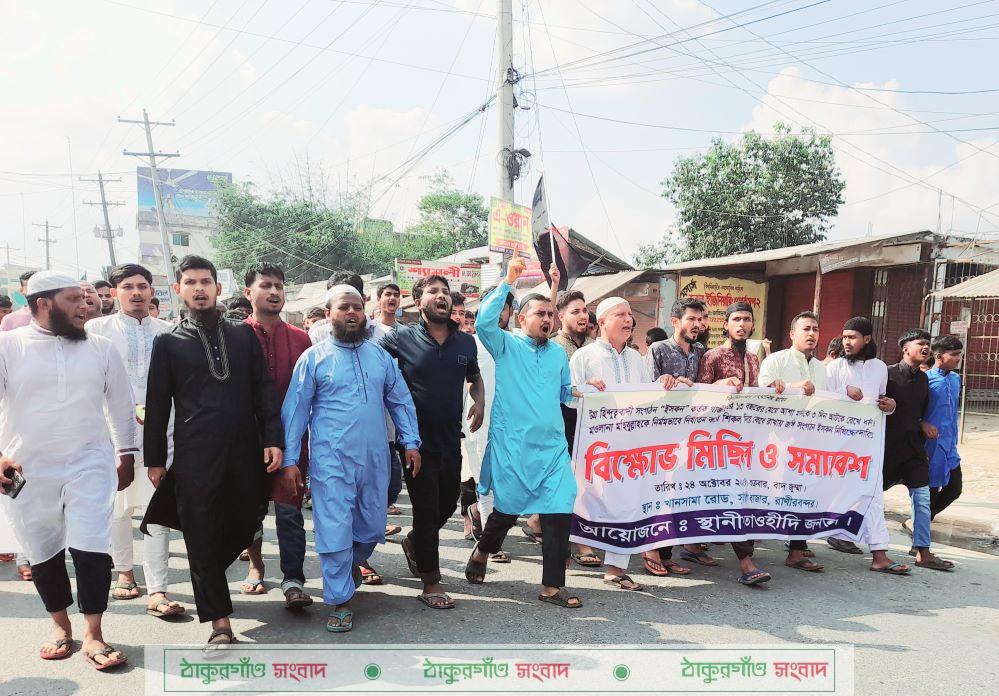 গতকাল ২৪ অক্টোবর শুক্রবার বাদ জুম’আ উপজেলার রানীরবন্দরে সর্বস্তরের তাওহীদি জনতার উদ্যোগে বিক্ষোভ মিছিল ও সমাবেশ অনুষ্ঠিত হয়েছে। বিক্ষোভ মিছিলটি প্রধান সড়ক প্রদক্ষিণ করে এবং মিছিল শেষে বাহাদুর বাজার চত্বরে সমাবেশ করে।