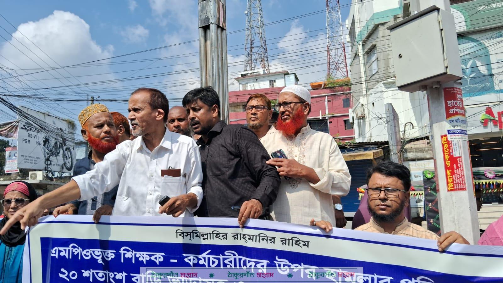 বিক্ষোভ ও প্রতিবাদ সমাবেশে ঠাকুরগাঁও জেলার মাদরাসার শিক্ষক ও কর্মচারীবৃন্দ উপস্থিত ছিলেন।
