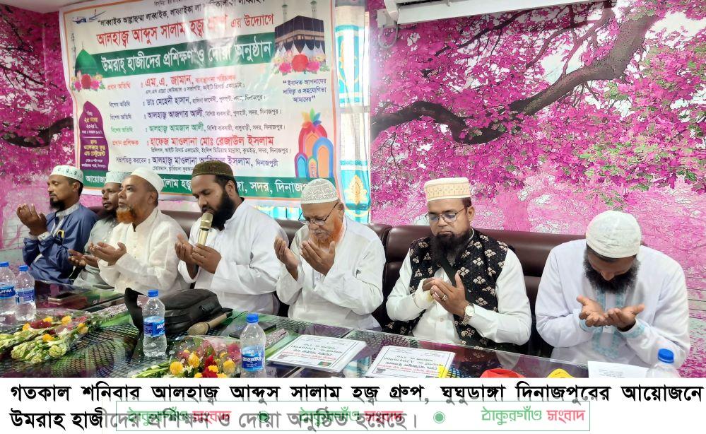 প্রশিক্ষণ শেষে দোয়া মাহফিল অনুষ্ঠিত হয়। দোয়া পরিচালনা করেন হাফেজ মাওলানা মোঃ রেজাউল ইসলাম। উল্লেখ, ২০২৫ সালের সেপ্টেম্বর মাসে ৪৩ জনকে উমরাহ নিয়ে যান আলহাজ্ব আব্দুস সালাম হজ্ব গ্রæপ। এছাড়া অক্টোবর মাসে ৪০ জনকে উমরাহ পালন করবেন বলে জানানো হয়। আগামী ৫ নভেম্বর সৌদি আরবের উদ্যোশ্যে ঢাকা বাংলাদেশ ত্যাগ করবেন বলে আলহাজ্ব আব্দুস সালাম হজ্ব গ্রæপ জানিয়েছেন।