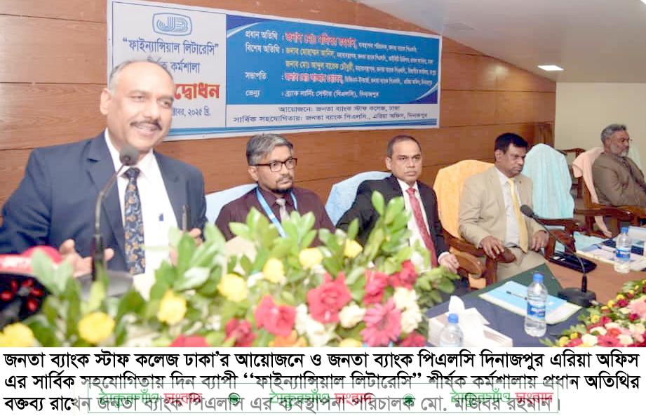 জনতা ব্যাংক স্টাফ কলেজ ঢাকা’র আয়োজনে ও জনতা ব্যাংক পিএলসি দিনাজপুর এরিয়া অফিস এর সার্বিক সহযোগিতায় দিন ব্যাপী ‘‘ফাইন্যান্সিয়াল লিটারেসি’’ শীর্ষক কর্মশালা অনুষ্ঠিত হয়েছে। এতে প্রধান অতিথি ছিলেন জনতা ব্যাংক পিএলসি এর ব্যবস্থাপনা পরিচালক মো. মজিবর রহমান।