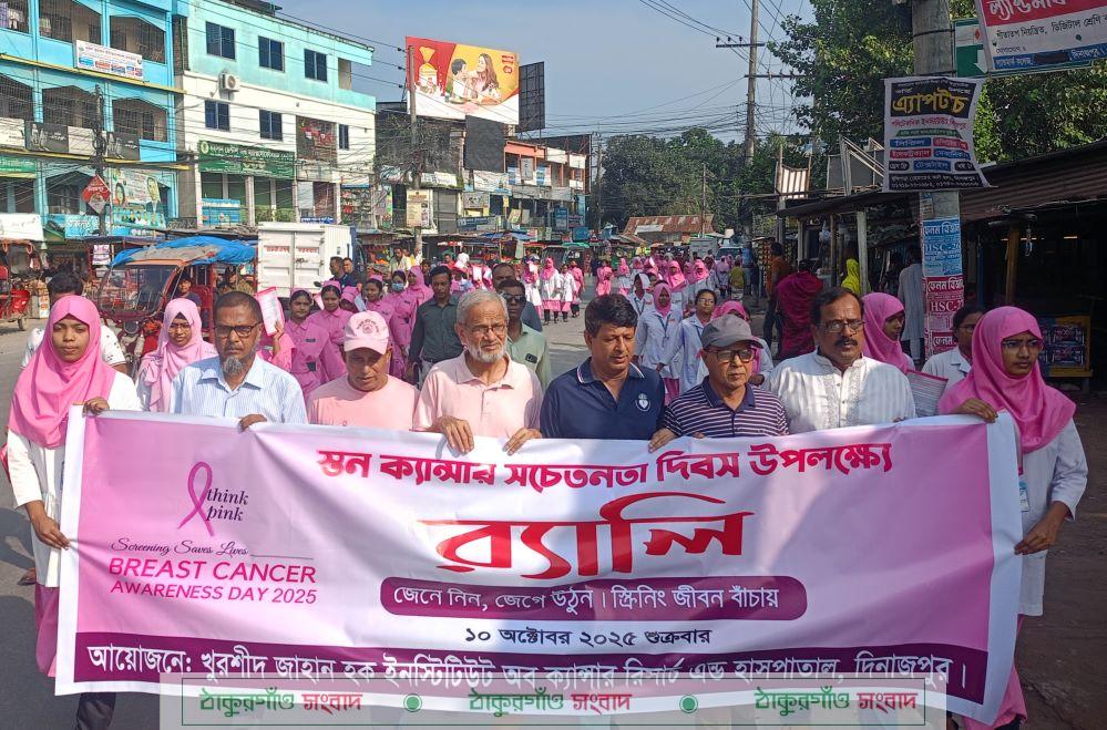 দিনাজপুরে স্তন ক্যান্সার সচেতনতা দিবস উপলক্ষে র্যালী ও আলোচনা সভা অনুষ্ঠিত হয়েছে।
