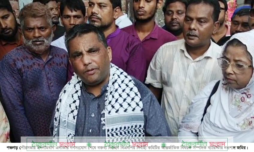 এ সময় জেলা বিএনপির যুগ্ন আহŸায়ক এম এ মজিদ, মির্জা নাজমুল ইসলাম কাজলসহ বিএনপি ও অংগসংগঠনের নেতা কর্মীরা উপস্থিত ছিলেন। উল্লেখ্য, গত রোববার সকালে পঞ্চগড় পৌরসভার জালাসী মোড় থেকে ‘ঘরে ঘরে জনে’ কর্মসূচি শুরু হয়। এই কর্মসূচিতে বিএনপির ৩১ দফা কর্মসূচী এবং রাস্ট্র ক্ষমতায় গেলে ১৮০ দিনে বিএনপির প্রতিশ্রæতি বাস্তবায়ন সম্পর্কে ধারনা দেয়া হচ্ছে। এই কর্মসূচি বাস্তাবায়ন করতে ১৯টি টিম গঠন করা হয়েছে। আগামী মাসের ১৫ তারিখ পর্যন্ত এই কর্মসূিচ অব্যাহত থাকবে।