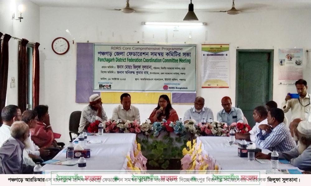 পঞ্চগড় জেলা ফেডারেশন সমন্বয় কমিটির সভাপতি দবিরুল ইসলামের সভাপতিত্বে অনুষ্ঠানে বিশেষ অতিথি হিসেবে উপস্থিত ছিলেন জেলা সমাজসেবার উপপরিচালক অনিরুদ্ধ কুমার রায়। বক্তব্য দেন আরডিআরএস বাংলাদেশ’র হেড অব এডমিনিস্ট্রেশন ও জেনারেল সার্ভিস মো. নজরুল গণি, টিম লিডার (সামাজিক উন্নয়ন) মো. রাশেদুল আরেফিন, আরডিআরএস কোর কম্প্রিহেন্সিভ প্রোগ্রামের প্রজেক্ট কো-অর্ডিনেটর মো. মতিউর রহমান, আরডিআরএস পঞ্চগড়’র কমিউনিটি ডেভেলপমেন্ট সুপারভাইজার মো. আতিকুর রহমান প্রমূখ। সমন্বয় সভায় পঞ্চগড় জেলার পাঁচ উপজেলার ৪৩টি ইউনিয়ন সমাজকল্যাণ ফেডারেশনের নেতৃবৃন্দগণ উপস্থিত ছিলেন। #