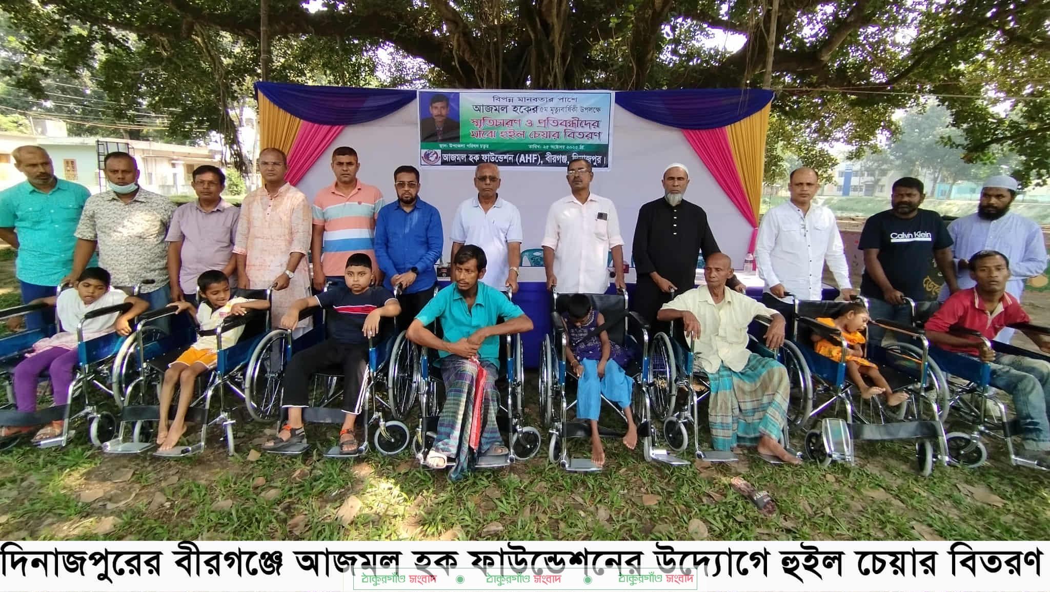বিপন্ন মানবতার পাশে, এই শ্লোগানে অরাজনৈতিক সেবামূলক প্রতিষ্ঠান আজমল হক ফাউন্ডেশন আয়োজনে চারণ ও হুইল চেয়ার বিতরণ অনুষ্ঠানে প্রধান অতিথি হিসেবে বক্তব্য রাখেন পৌর বিএনপির সভাপতি আলহাজ্ব আমিনুল বাহার। দৈনিক করতোয়া বীরগঞ্জ উপজেলা প্রতিনিধি মোঃ মীর কাশেম লালুর সভাপতিত্বে আজমল হকের কর্মময় জীবনের স্মৃতি চারণ করে অনুষ্ঠানে বিশেষ অতিথি হিসেবে বক্তব্য রাখেন বিশিষ্ট রাজনীতিবিদ ও সাবেক ফুটবলার সুভাষ দাস, গ্রামীন চক্ষু হাসপাতালের পরিচালক এমদাদুল কবির চৌধুরী, বলেয়া উচ্চ বিদ্যালয়ের সহকারী শিক্ষক জয় গোপাল, বীরগঞ্জ ঠিকাদার কল্যাণ সমিতির সাধারণ সম্পাদক মোঃ কামরুল হাসান, আজমল ফাউন্ডেশনের প্রতিষ্ঠাতা ও পরিচালক মোঃ মেহেদী হাসান সজল প্রমুখ।
