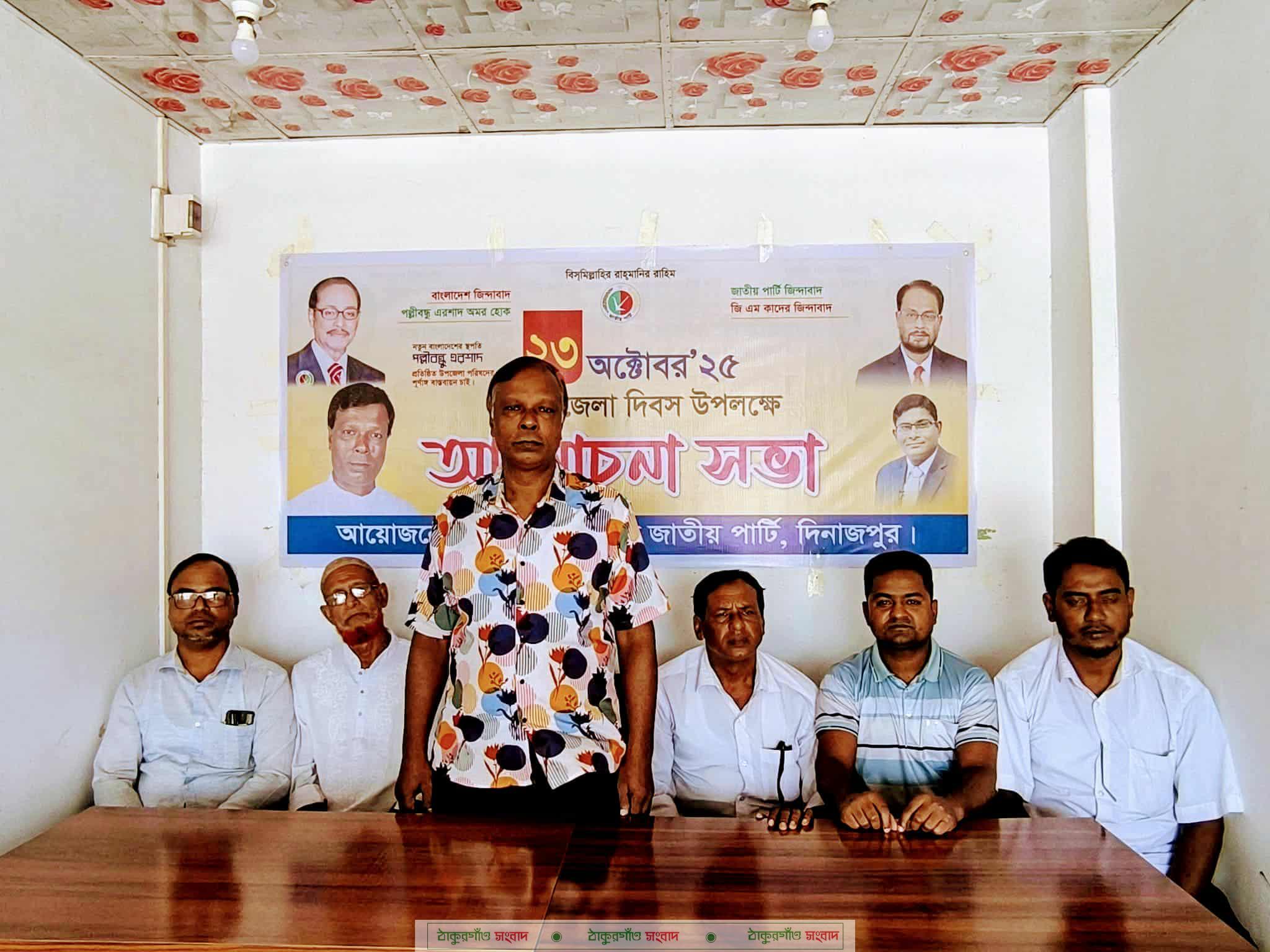 বক্তাগণ পল্লীবন্ধু হুসেইন মোহাম্মদ এরশাদ এর উপজেলা দিবসের আলোচনায় পূর্ণাঙ্গ উপজেলা পদ্ধতি বাস্তবায়নের জোর দাবি জানান। বক্তাগণ প্রয়াত নেতা এরশাদের রুহের মাগফেরাত কামনা করে উপজেলা সৃষ্টির উন্নয়নসহ বিভিন্ন কার্যক্রমের বর্ণনা তুলে ধরেন। বক্তারা আরো বলেন, ১৯৮৪ সালের উপজেলা আইন পুনরায় বাস্তবায়ন করতে হবে। দুই নেত্রীর হাত থেকে দেশ বাঁচাতে জাতীয় পার্টির বিকল্প নেই। ক্ষমতাসীন সরকার ঘরে ঘরে চাকরি দেওয়ার কথা বললেও তা বাস্তবায়ন করতে পারেনি। তাই জনগণ পরিবর্তন চায়। পরিশেষে