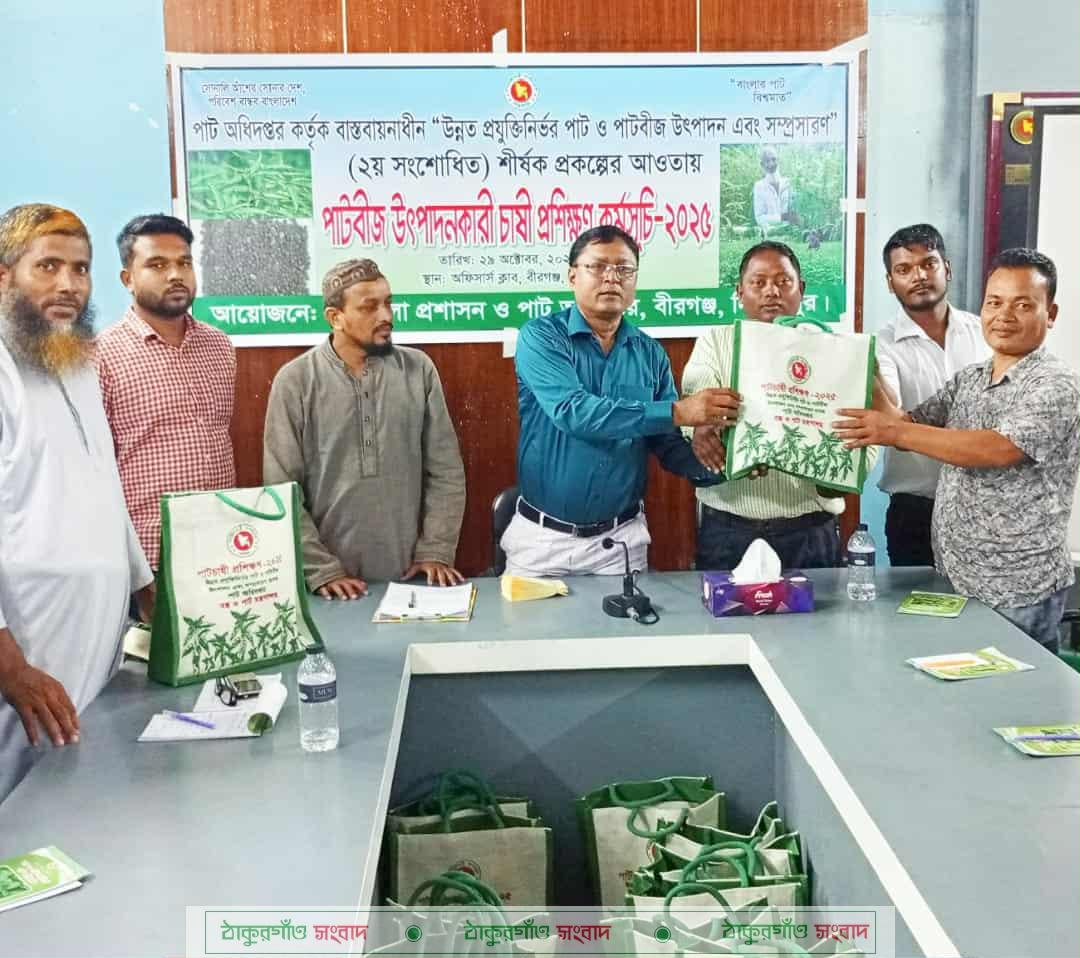 দিনাজপুরের বীরগঞ্জে পাট উৎপাদনকারী চাষীদের আধুনিক পদ্ধতিতে পাট ও বীজ উৎপাদন প্রশিক্ষণ কর্মশালা অনুষ্ঠিত হয়েছে।