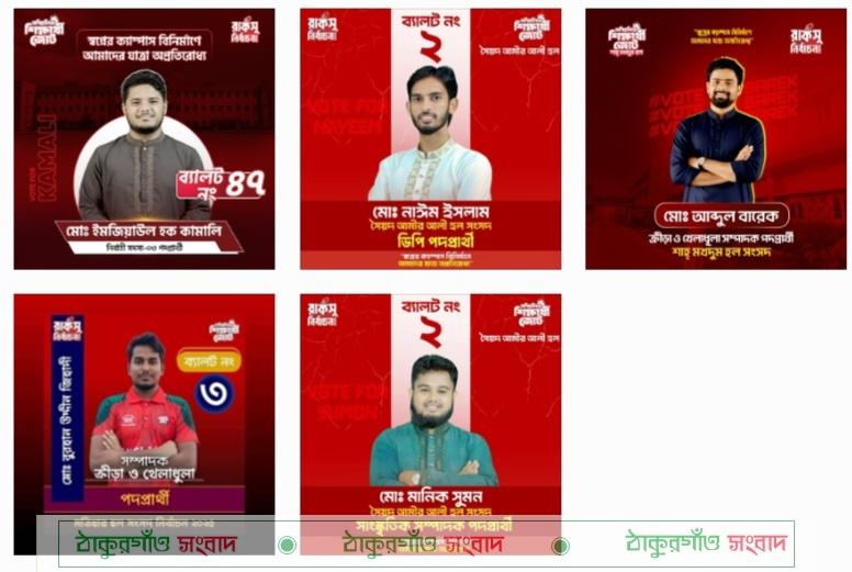 রাকসু নির্বাচনে ছাত্রশিবির সমর্থিত সম্মিলিত শিক্ষার্থী জোটের প্যানেল থেকে বিজয়ী ঠাকুরগাঁওয়ের পাঁচজন কৃতিসন্তান।