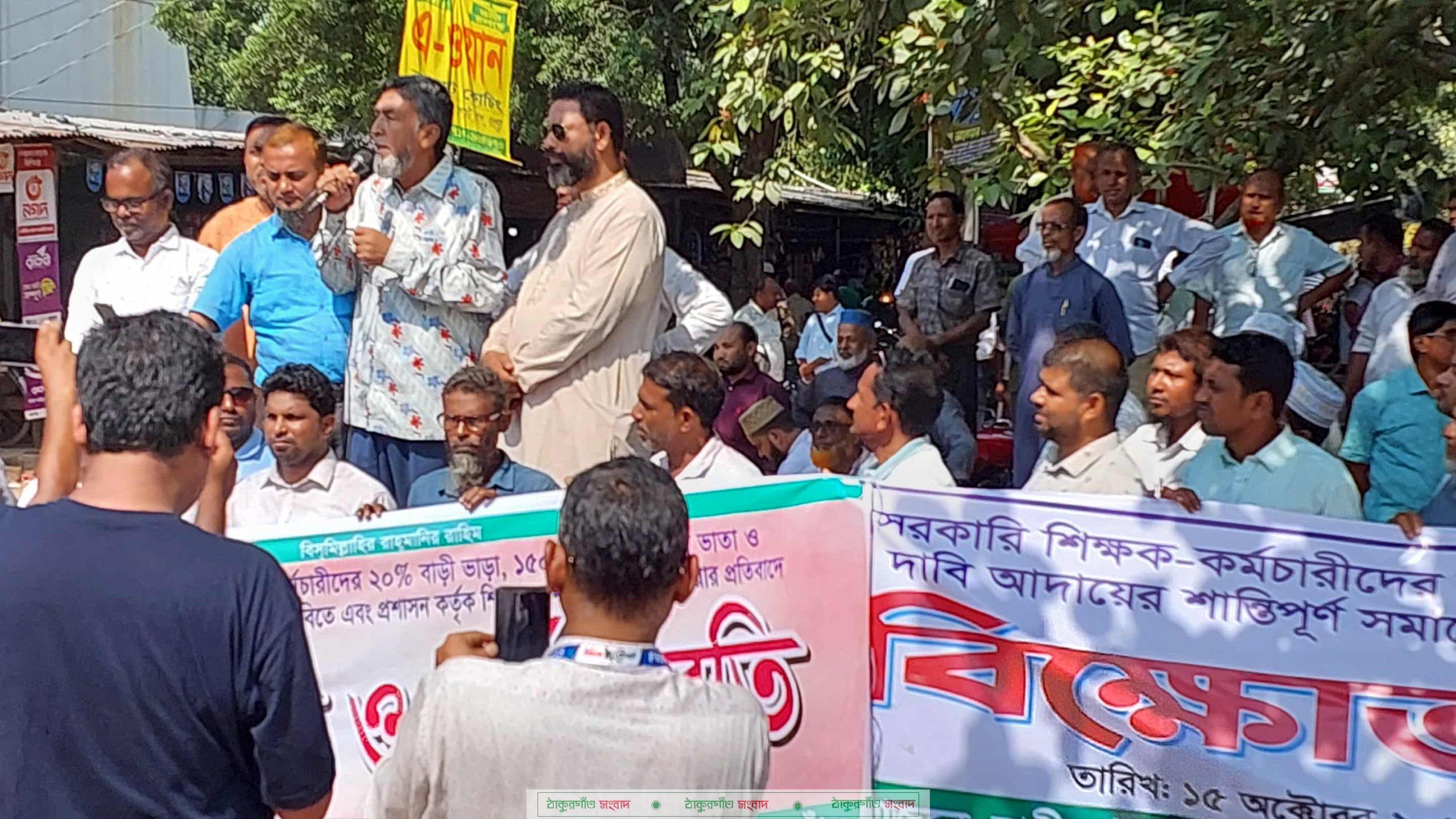 শিক্ষক-কর্মচারীরা ব্যানার ও ফেস্টুন হাতে বিক্ষোভ মিছিল বের করে উপজেলা পরিষদ গেটে গিয়ে অবস্থান নেন। সেনাবাহিনী সেখানে অবস্থান কর্মসূচিতে বাধা দিলে তাঁরা সড়কের পাশে দাঁড়িয়ে সমাবেশ চালিয়ে যান।