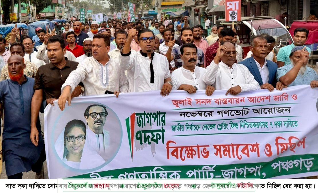 উক্ত বিক্ষোভ মিছিল ও সমাবেশে আর বক্তব্য রাখেন পঞ্চগড় জেলা জাগপার সভাপতি বীর মুক্তিযোদ্ধা আনসার আলী, সাধারণ সম্পাদক শাহরিয়ার আলম বিপ্লব, সহ-সভাপতি শামসুজ্জামান নয়ন মাস্টার , সাংগঠনিক সম্পাদক কামাল হোসেন পাটোয়ারী, সদর উপজেলা জাগপা সভাপতি আনোয়ারুল ইসলাম, আটোয়ারী উপজেলা জাগপা সাধারণ সম্পাদক মাওলানা বজলুর রহমান, তেঁতুলিয়া উপজেলা জাগপা সাধারণ সম্পাদক নজরুল ইসলাম, বোদা উপজেলা জাগপা সাধারণ হাবিবুর রহমান মাস্টার, দেবীগঞ্জ উপজেলা জাগপা নেতা হাসান মাষ্টার প্রমুখ।