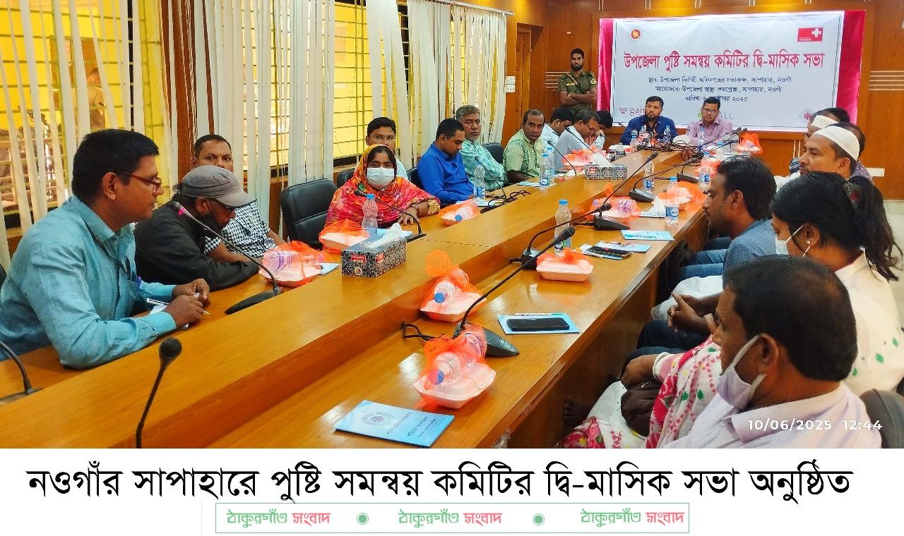 প্রদীপ কুমার সাহা,সাপাহার (নওগাঁ) প্রতিনিধি: নওগাঁর সাপাহারে পুষ্টি সমন্বয় কমিটির দ্বি-মাসিক সভা অনুষ্ঠিত হয়েছে।