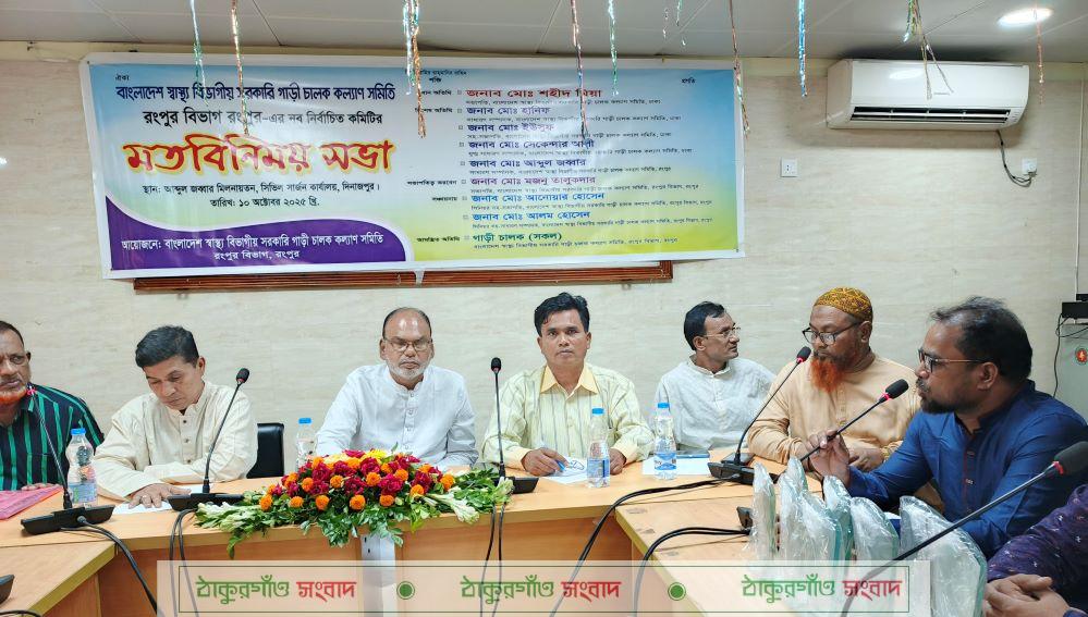শুক্রবার দিনাজপুর সিভিল সার্জন কার্যালয়ের আব্দুল জব্বার মিলনায়তনে বাংলাদেশ স্বাস্থ্য বিভাগীয় সরকারি গাড়ি চালক কল্যাণ সমিতি রংপুর বিভাগের নব নির্বাচিত কমিটির মতবিনিময় সভা অনুষ্ঠিত হয়েছে।