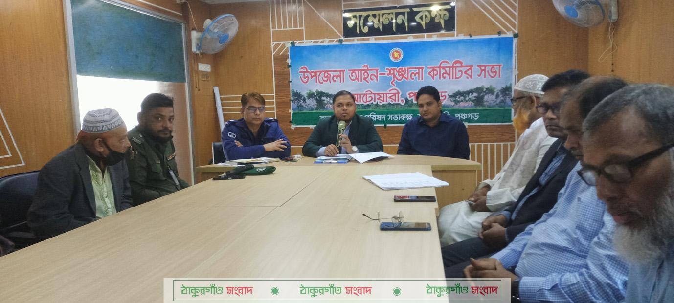 পঞ্চগড়ের আটোয়ারীতে মাসিক আইনশংখলা ও সমন্বয় সভা অনুষ্ঠিত হয়েছে। মঙ্গলবার (২৫ নভেম্বর) সকালে উপজেলা নির্বাহী অফিসার (অ:দা:) মোঃ রবিউল ইসলামের সভাপতিত্বে সভাদ্বয় অনুষ্ঠিত হয়। উপজেলার সার্বিক আইনশৃংখলা পরিস্থিতি নিয়ে এবং বিভিন্ন সমস্যাবলীর ওপর গুরুত্বারোপ করে সভাদ্বয়ে বক্তব্য রাখেন আটোয়ারী মডেল স্বাস্থ্য কমপ্লেক্সের প্রধান ডাঃ মোঃ হুমায়ুন কবির. কৃষি অফিসার মোস্তাক আহমেদ, এলজিইডি প্রকৌশলী মোঃ ফয়সাল, ওসি মোঃ রফিকুল ইসলাম সরকার জুয়েল, ইউনিয়ন পরিষদের চেয়ারম্যানবৃন্দ, বিজিবি প্রতিনিধি সুবেদার মোঃ ইসমাইল হোসেন ও সুবেদার মোঃ সিদ্দিক, সাবেক উপজেলা কমান্ডার বীরমুক্তিযোদ্ধা মোঃ নজরুল ইসলাম, আটোয়ারী প্রেসক্লাবের সভাপতি মোঃ আনিসুর রহমান ও উপজেলা প্রেসক্লাবের সভাপতি মোঃ ইউসুফ আলী এবং স্থানীয় ছাত্র সমন্বয়ক বাবু সহ বিভিন্ন দপ্তরের দগÍর প্রধান এবং প্রতিনিধিগণ।