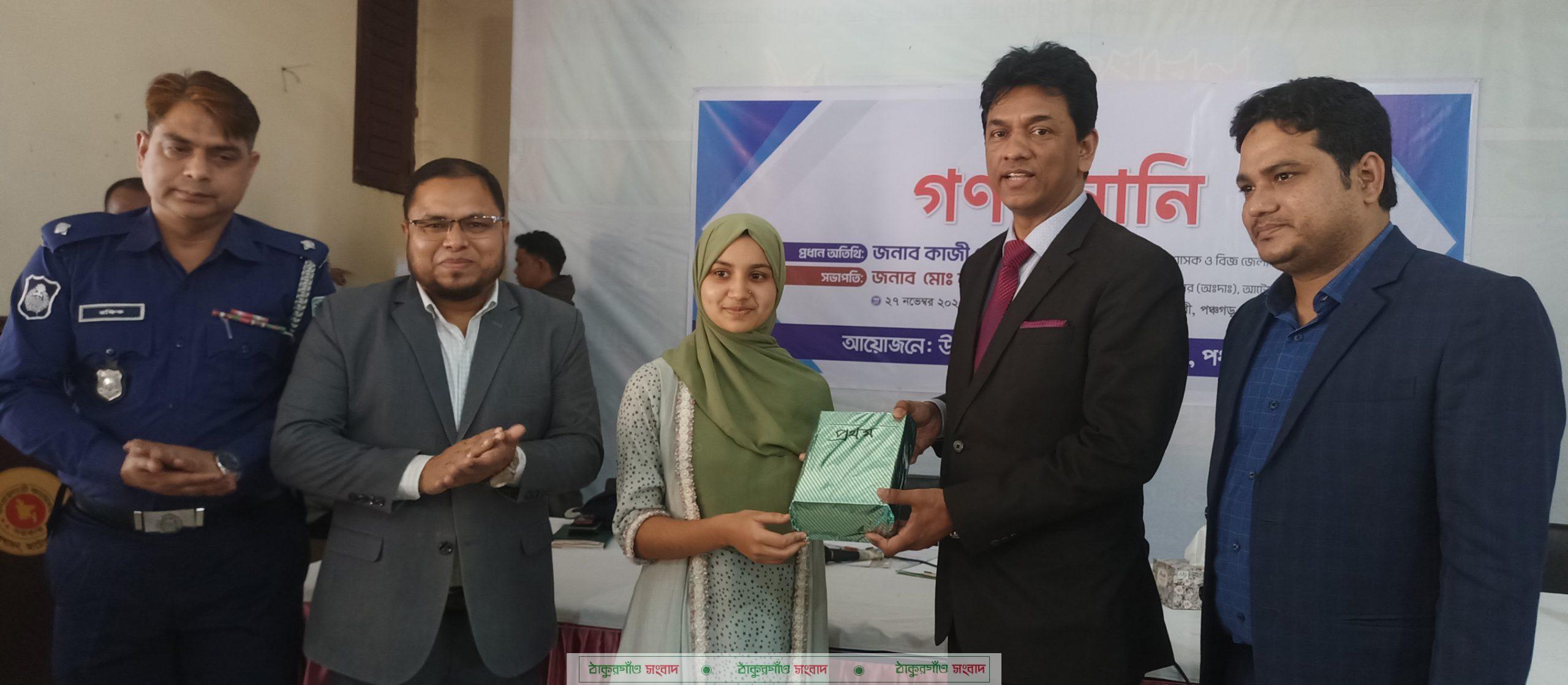 পঞ্চগড়ের নবাগত জেলা প্রশাসক কর্তৃক আটোয়ারীতে গণশুনানী অনুষ্ঠিত হয়েছে। বৃহস্পতিবার (২৭ নভেম্বর) সকালে উপজেলা নির্বাহী অফিসার (অ:দা:) মোঃ রবিউল ইসলামের সভাপতিত্বে পরিষদের হলরুমে গণশুনানীর আয়োজন করে আটোয়ারী উপজেলা প্রশাসন। গণশুনানীতে প্রধান অতিথি হিসেবে উপস্থিত থেকে সেবা গ্রহিতা ও আমন্ত্রিত অতিথিদের উদ্দ্যেশে কথা বলেন নবাগত পঞ্চগড় জেলা প্রশাসক ও বিজ্ঞ জেলা ম্যাজিষ্ট্রেট কাজী মোঃ সায়েমুজ্জামান। এসময় উপস্থিত ছিলেন উপজেলা স্বাস্থ্য কমপ্লেক্সের প্রধান ডাঃ মোঃ হুমায়ুন কবির, উপজেলা কৃষি অফিসার মোস্তাক আহম্মেদ, উপজেলা প্রকৌশলী মোঃ ফয়সাল, ওসি মোঃ রফিকুল ইসলাম সরকার জুয়েল, বিভিন্নœ ইউনিয়ন পরিষদের চেয়ারম্যানবৃন্দ, বীরমুক্তিযোদ্ধাগণ, সেবা গ্রহিতা ব্যক্তিবর্গ, বিভিন্ন দপ্তরের প্রধানগণ, স্থানীয় গণমাধ্যমকর্মী সহ ছাত্র সমন্বয়ক এবং স্বেচ্ছাসেবীবৃন্দ। জেলা প্রশাসক গণশুনানীতে বলেন, তিনি পঞ্চগড় জেলাকে দুর্নীতি ও মাদকমুক্ত পরিচ্ছন্ন জেলায় রুপান্তরের লক্ষ্যে সবার সহযোগিতা কামনা করেন। একই সঙ্গে তিনি বিভিন্ন দপ্তরের দপ্তর প্রধানদের নির্দেশ দেন, সেবা গ্রহিতাদের সাথে ভালো আচরনের মধ্য দিয়ে যেন সকলেই সরকারী সেবার সুফল ভোগ করতে পারেন। গণশুনানী শেষে জেলা প্রশাসক আটোয়ারী থানা পরিদর্শন করেন।