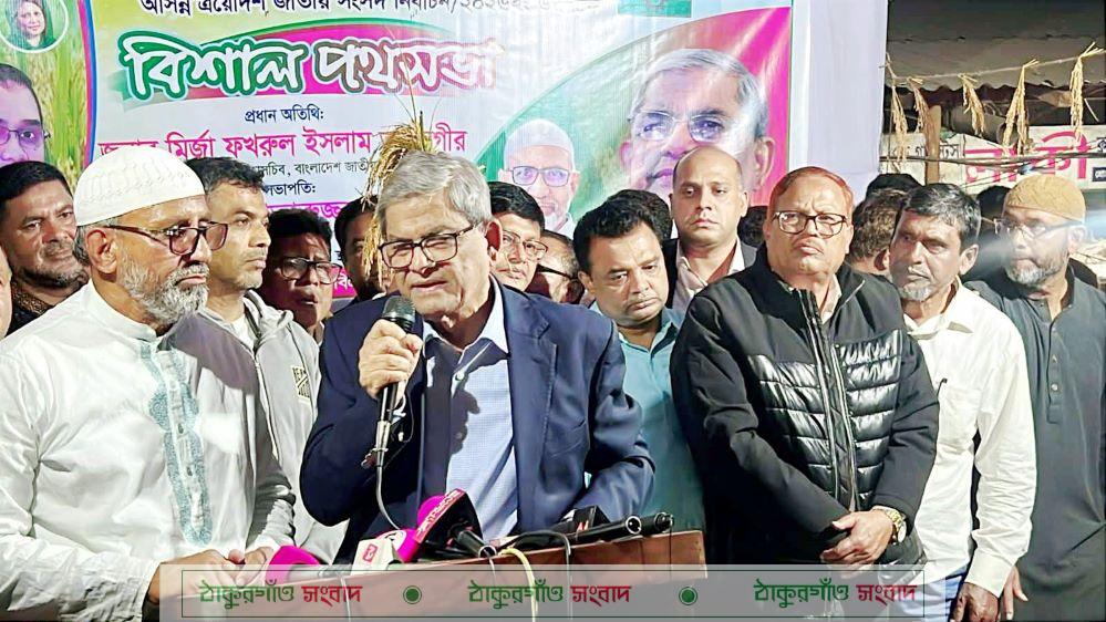 চিরিরবন্দর (দিনাজপুর) প্রতিনিধিঃ দিনাজপুরের চিরিরবন্দরে পথসভায় বিএনপি’র মহাসচিব মির্জা ফখরুল ইসলাম আলমগীর বলেন, একটি দল দেশে বিশৃংখলা সৃষ্টির পাঁয়তারা করছে।তারা বলছে, একদিনে জাতীয় নির্বাচন ও গণভোট হলে দেশে নাকি জেনোসাইড হবে। জেনোসাইড মানে গণহত্যা। ১৯৭১সালে গণহত্যার তারা দোষর ছিলেন। আজকে দেশে গণহত্যার কোন সুযোগ নাই। বাংলাদেশের মানুষ আর কোন হিংসার রাজনীতি করতে দিবে না। আগামীদিনে দেশে উন্নয়ন কার্যক্রম ত্বরান্বিত করতে বিএনপি’র ধানের শীষে ভোট দিয়ে ক্ষমতায় আনতে হবে। দিনাজপুর-৪ (চিরিরবন্দর-খানসামা) আসনে জনপ্রিয় নেতা আখতারুজ্জামান মিয়াকে ধানের শীষে ভোট দিয়ে জয়যুক্ত করবেন। বিএনপি নেত্রী দেশনেত্রী বেগম খালেদার জন্য সকলে দোয়া করবেন, তাঁকে দিনাজপুরে বিপুল ভোটে জয়যুক্ত করে উত্তরাঞ্চলে উন্নয়ন করার সুযোগ করে দিবেন।