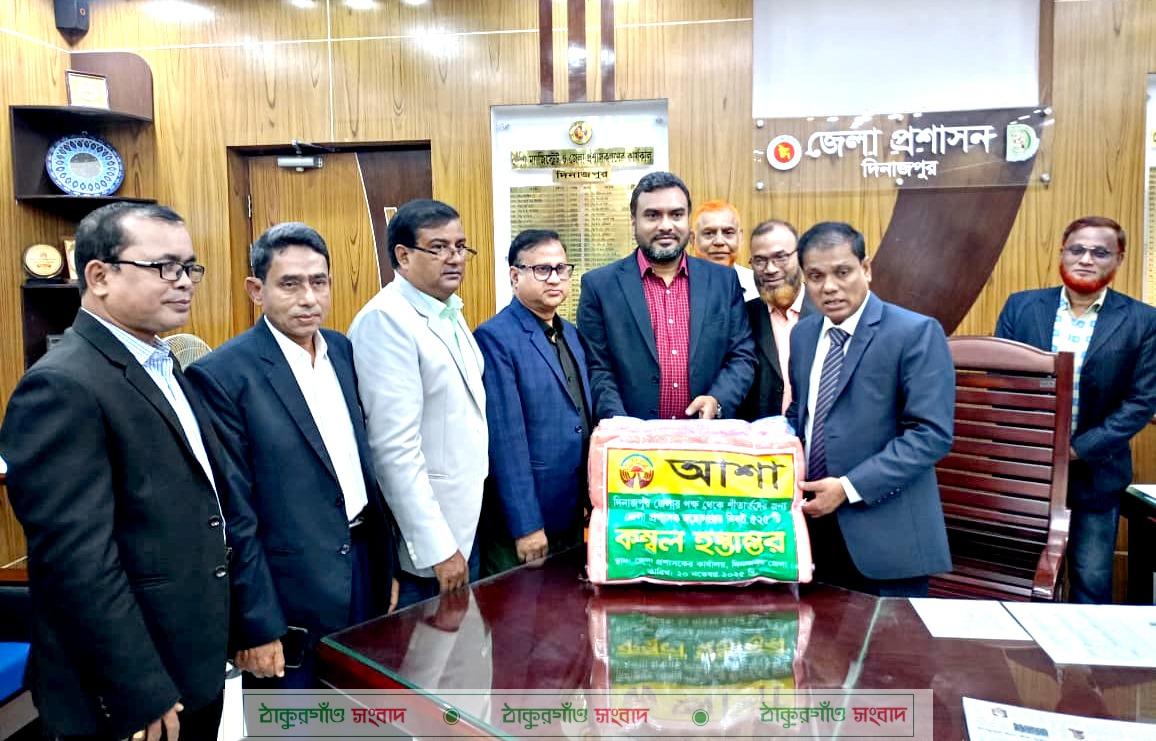 বৃহস্পতিবার সকালে দিনাজপুর জেলা প্রশাসক ও জেলা ম্যাজিস্ট্রেট মোঃ রফিকুল ইসলাম এর নিকট দরিদ্র, শীতার্তদের মাঝে বিতরণের জন্য বেসরকারি উন্নয়ন সংস্থা আশা দিনাজপুর জেলার পক্ষ থেকে ৫২৫ পিস কম্বল হস্তান্তর করা হয়েছে।
