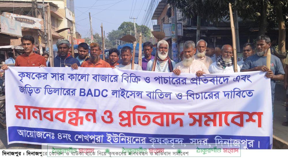 রোববার সকালে দিনাজপুর প্রেসক্লাবের সামনে সদর উপজেলার শেখপুরা ইউনিয়নের কৃষকরা এই কর্মসূচী পালন করেন। পরে তারা দিনাজপুর জেলা প্রশাসকের মাধ্যমে কৃষি উপদেষ্টার নিকট একটি স্মারকলিপি প্রদান করেন।