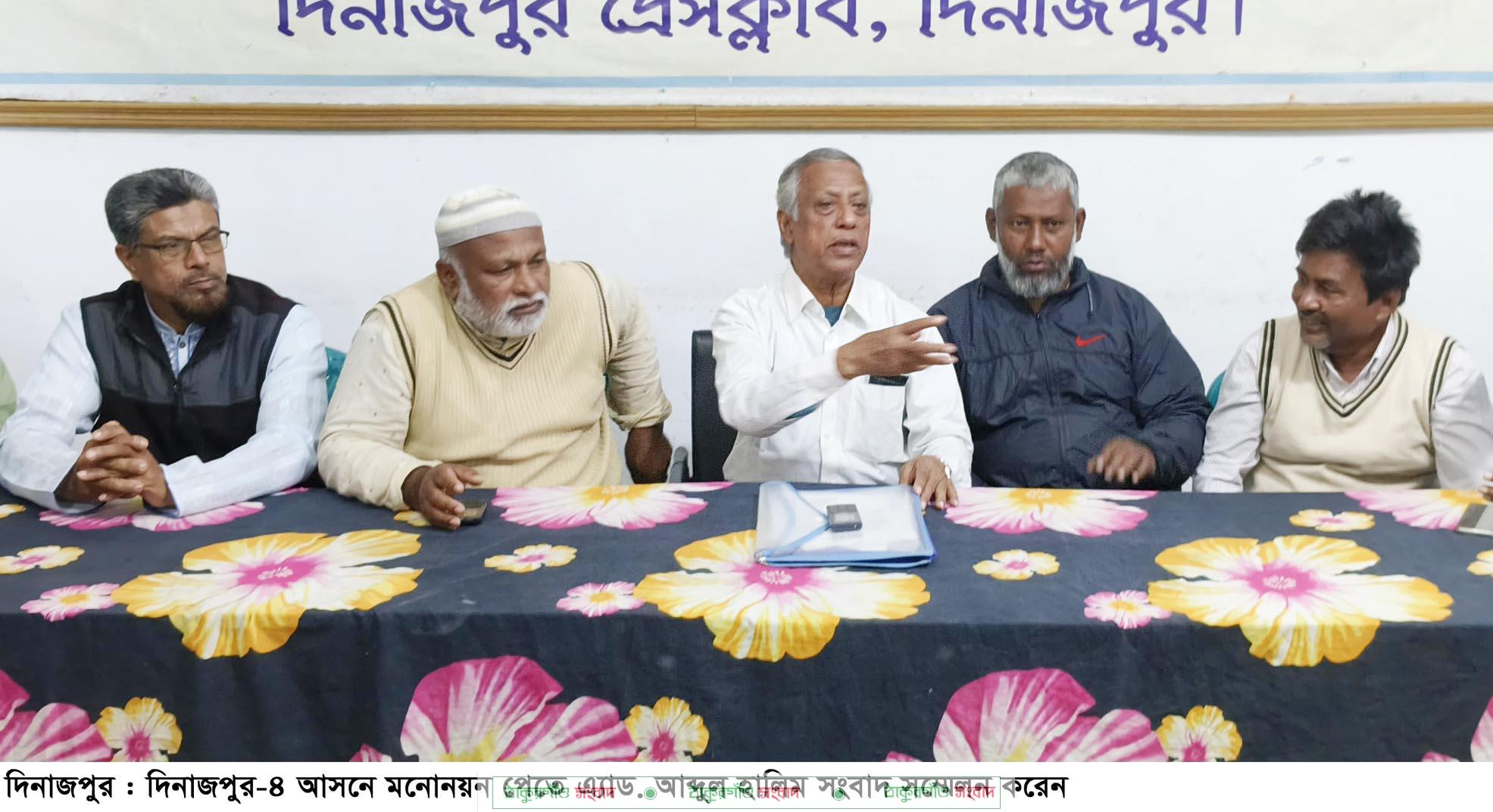 দিনাজপুর-৪ (খানসামা-চিরিরবন্দর) নির্বাচনী এলাকায় ধানের শীষের প্রার্থী হিসেবে মনোনয়ন পাওয়ার জন্য সংবাদ সম্মেলন করেছেন ওই আসনের সাবেক সংসদ সদস্য এ্যাডভোকেট মোঃ আব্দুল হালিম।