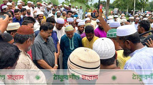 পীরগঞ্জ(ঠাকুরগাঁ)প্রতিনিধি ঃ ঠাকুরগাঁওয়ের পীরগঞ্জ উপজেলার নারায়নপুর গ্রামে জমি জমা নিয়ে দুই পক্ষের দীর্ঘ দিনের বিরোধ জেলা লিগ্যাল এইডের মাধ্যমে আপোষে মিমাংসা করে দেওয়া হয়েছে। বৃহস্পতিবার দুপুরে চীফ লিগ্যাল এইড কর্মকর্তা ও সিনিয়র সহকারী জজ মজনু মিয়া ঘটনাস্থলে উপস্থিত হয়ে বৈঠকের মাধ্যমে এ মিমাংসা করে দেন। নারায়নপুর গ্রামে ১ একর ১৯ শতক জমি নিয়ে পারুল বেগম ও ইমদাদাদুল হকের ভাগিদারের মাধ্যে বিরোধ চলে আসছিল। এ নিয়ে পারুল বেগম জেলা লিগ্যাল এইড আফিসে অভিযোগ দিলে লিগ্যাল এইডের বিচারক ঘটনাস্থলে এসে আপোষে বিরোধ মিমাংসা করে দেন এবং যার যার অংশ মেপে সীমানা নির্ধারণ করে দেন। কোন রকম খরচ ছাড়াই এমন বিচার পেয়ে উভয় পক্ষই খুশি। এ সময় থানা পুলিশ, গনমাধ্যম কর্মী সহ লিগ্যাল এইডের অন্যান্যরা উপস্থিত ছিলেন।