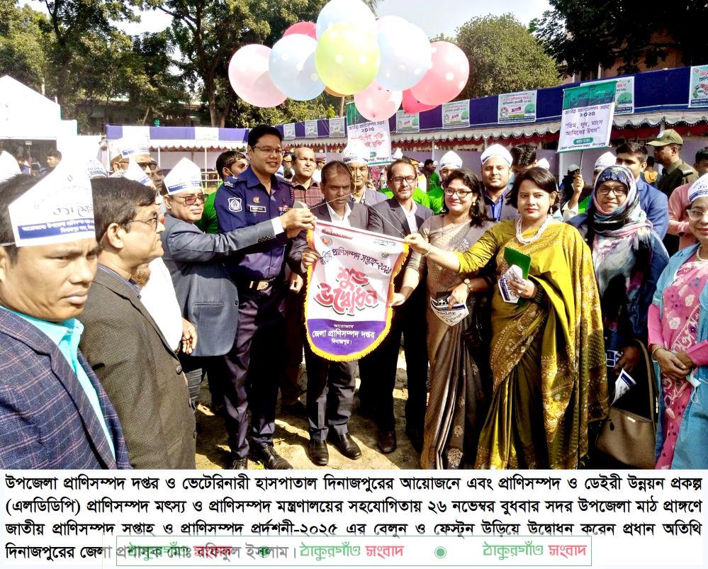 “দেশীও জাত, আধুনিক প্রযুক্তি-প্রাণিসম্পদের হবে উন্নতি”- এই শ্লোগানকে সামনে রেখে উপজেলা প্রাণিসম্পদ দপ্তর ও ভেটেরিনারী হাসপাতাল দিনাজপুরের আয়োজনে এবং প্রাণিসম্পদ ও ডেইরী উন্নয়ন প্রকল্প (এলডিডিপি) প্রাণিসম্পদ মৎস্য ও প্রাণিসম্পদ মন্ত্রণালয়ের সহযোগিতায় বুধবার সদর উপজেলা মাঠ প্রাঙ্গণে জাতীয় প্রাণিসম্পদ সপ্তাহ ও প্রাণিসম্পদ প্রর্দশনী-২০২৫ এর উদ্বোধন করতে গিয়ে তিনি প্রধান অতিথির বক্তব্যে এ কথাগুলো বলেন।