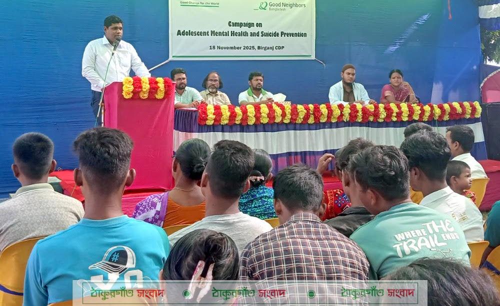 দিনাজপুরের বীরগঞ্জে কিশোর-কিশোরীদের মানসিক স্বাস্থ্য ও আত্মহত্যা প্রতিরোধ বিষয়ক ক্যাম্পেইন অনুষ্ঠিত হয়েছে।