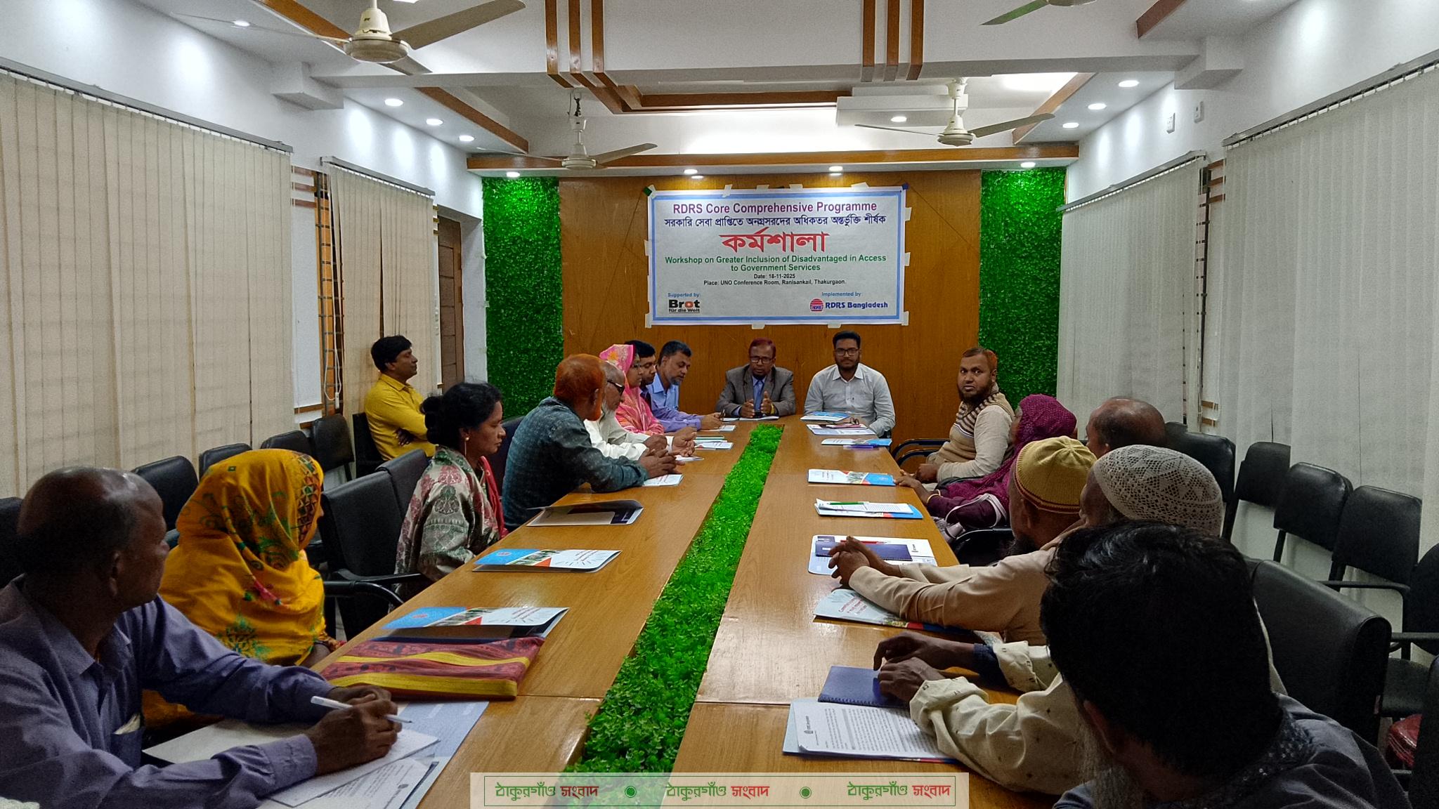 রাণীশংকৈল (ঠাকুরগাঁও) প্রতিনিধি : ঠাকুরগাঁওয়ের রাণীশংকৈল উপজেলা কনফারেন্স রুমে ১৮ নভেম্বর মঙ্গলবার বে- সরকারি সংস্থা আরডিআরএসের উদ্যোগে বিভিন্ন সরকারি কর্মকর্তাদের সাথে সেবা প্রাপ্তিতে অনগ্রসরদের অধিকতর অন্তর্ভুক্তি শীর্ষক কর্মশালা অনুষ্ঠিত হয়।