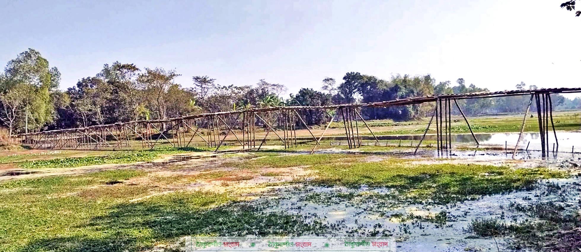 চিরিরবন্দর প্রতিনিধি\ দিনাজপুরের চিরিরবন্দর উপজেলার সাতনালা ইউনিয়নের তারকশাহার হাট এলাকায় ইছামতী নদীর ওপর একটি সেতুর অভাব দীর্ঘদিনের। নদী পারাপারে ভরসা ২৫০ ফুট দীর্ঘ একটি বাঁশের সাঁকো। সেতুর অভাবে প্রতিদিনের যাতায়াতের মতো কৃষকের ন্যায্যমূল্যও আটকে আছে ইছামতীর তীরে। অন্যদিকে দীর্ঘ পথ ঘুরতে গিয়ে বেড়ে যাচ্ছে কৃষকের ফসল উৎপাদন খরচ।